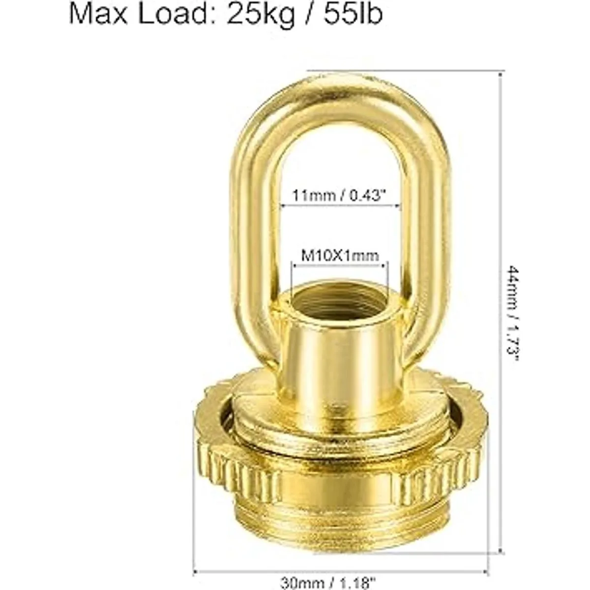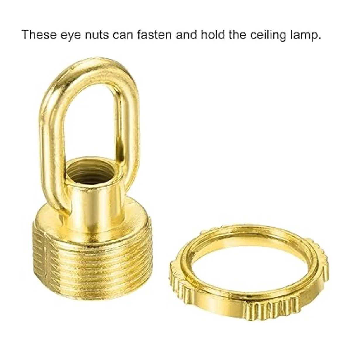 MECCANIXITY Tuerca de ojo de 55.1 lbs de carga máxima de 1.181 x 1.732 in M10 con forma de anillo hembra para colgar lámpara de araña, tono dorado, paquete de 2