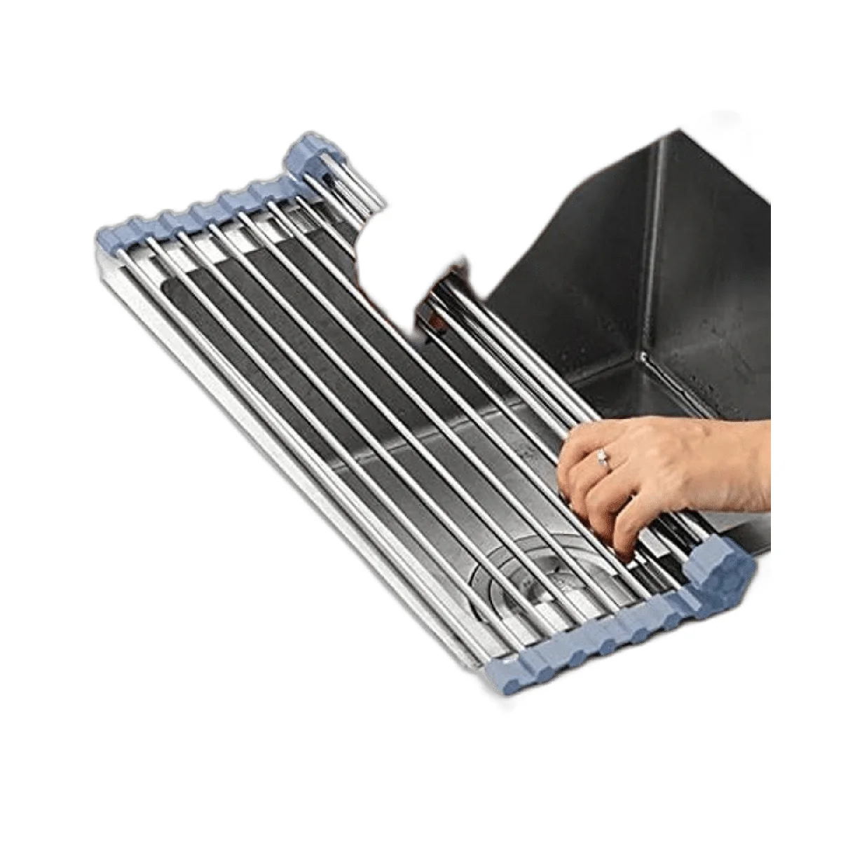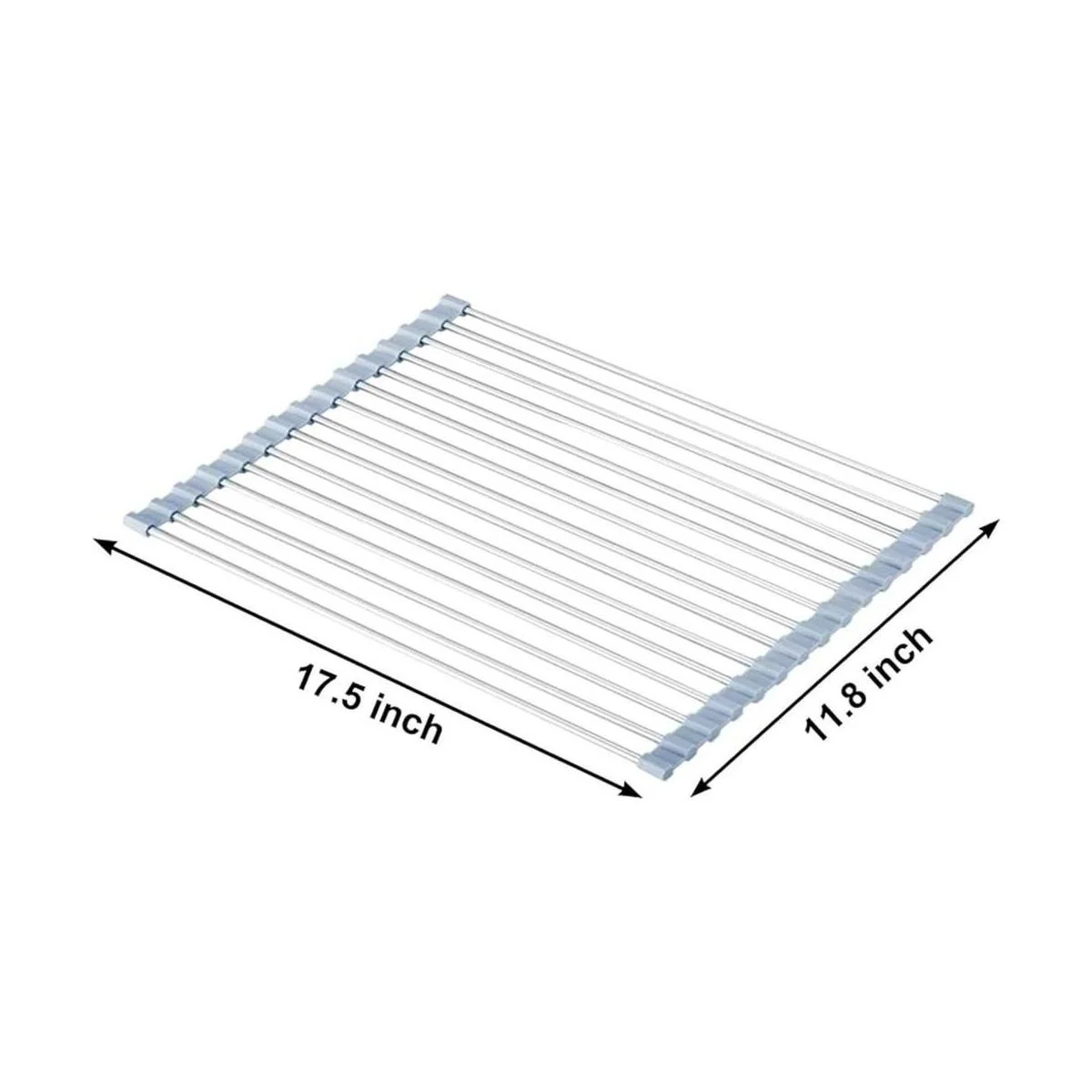 MECHEER Estante de secado para fregadero, escurridor, de acero inoxidable, escurridor de platos plegable 17.8 x 11.8 pulgadas