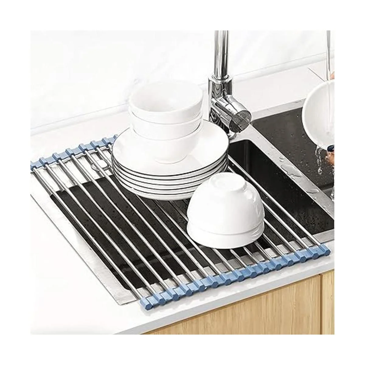 Resistente y duradero: el escurridor de fregadero de cocina tiene un marco fuerte fabricado con 15 tubos de acero inoxidable 304, conectados con silicona de alta calidad. Hace que el escurreplatos sea resistente a la corrosión, impermeable, antideslizante, soporta hasta 68.3 lbs.