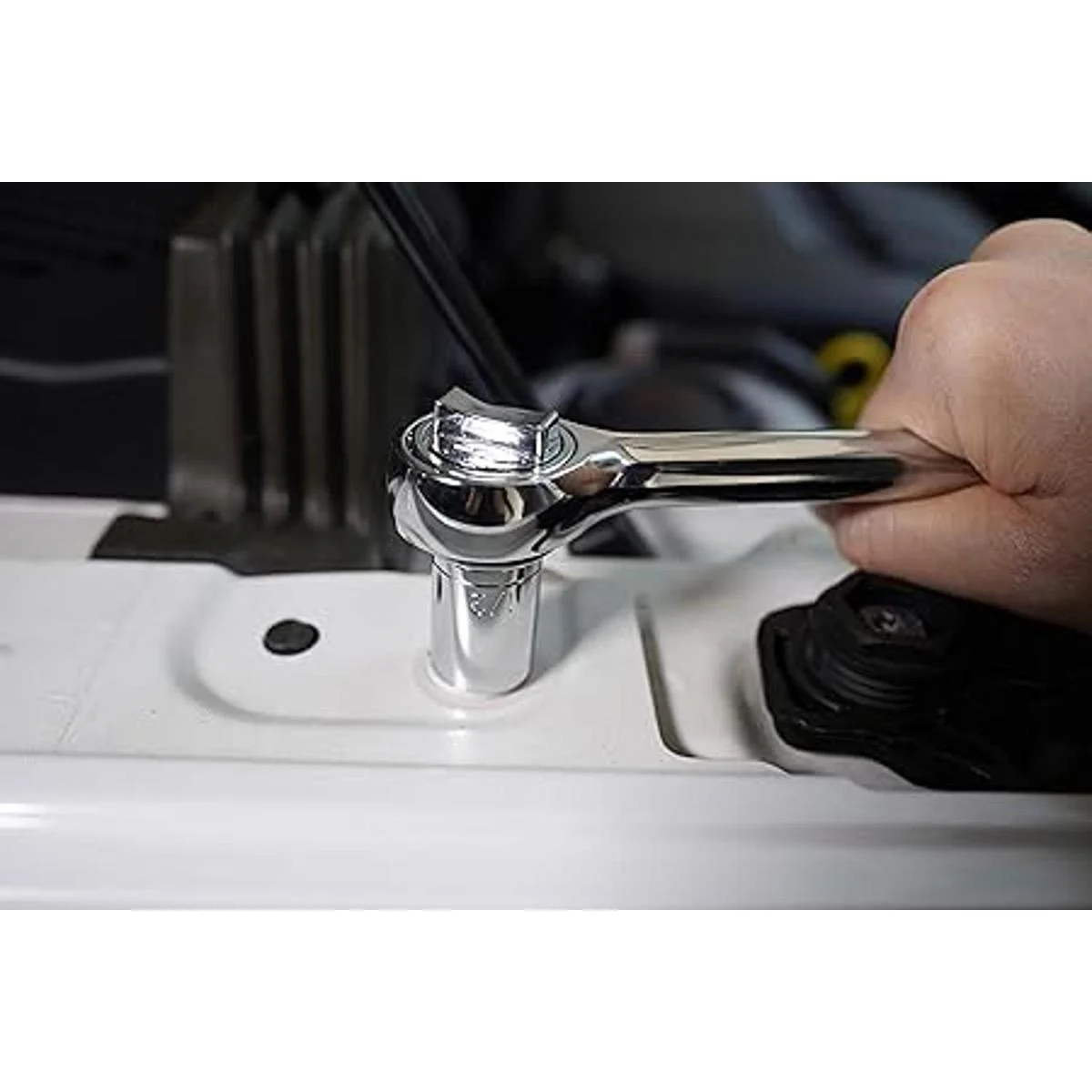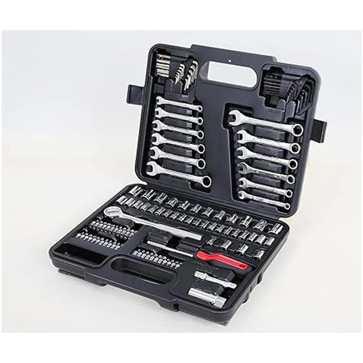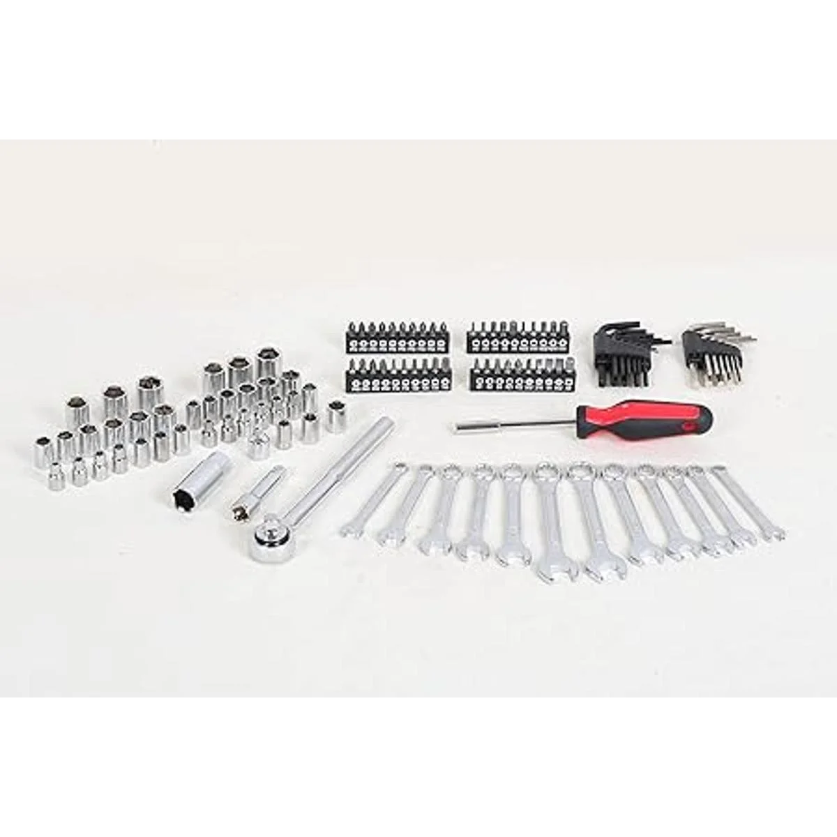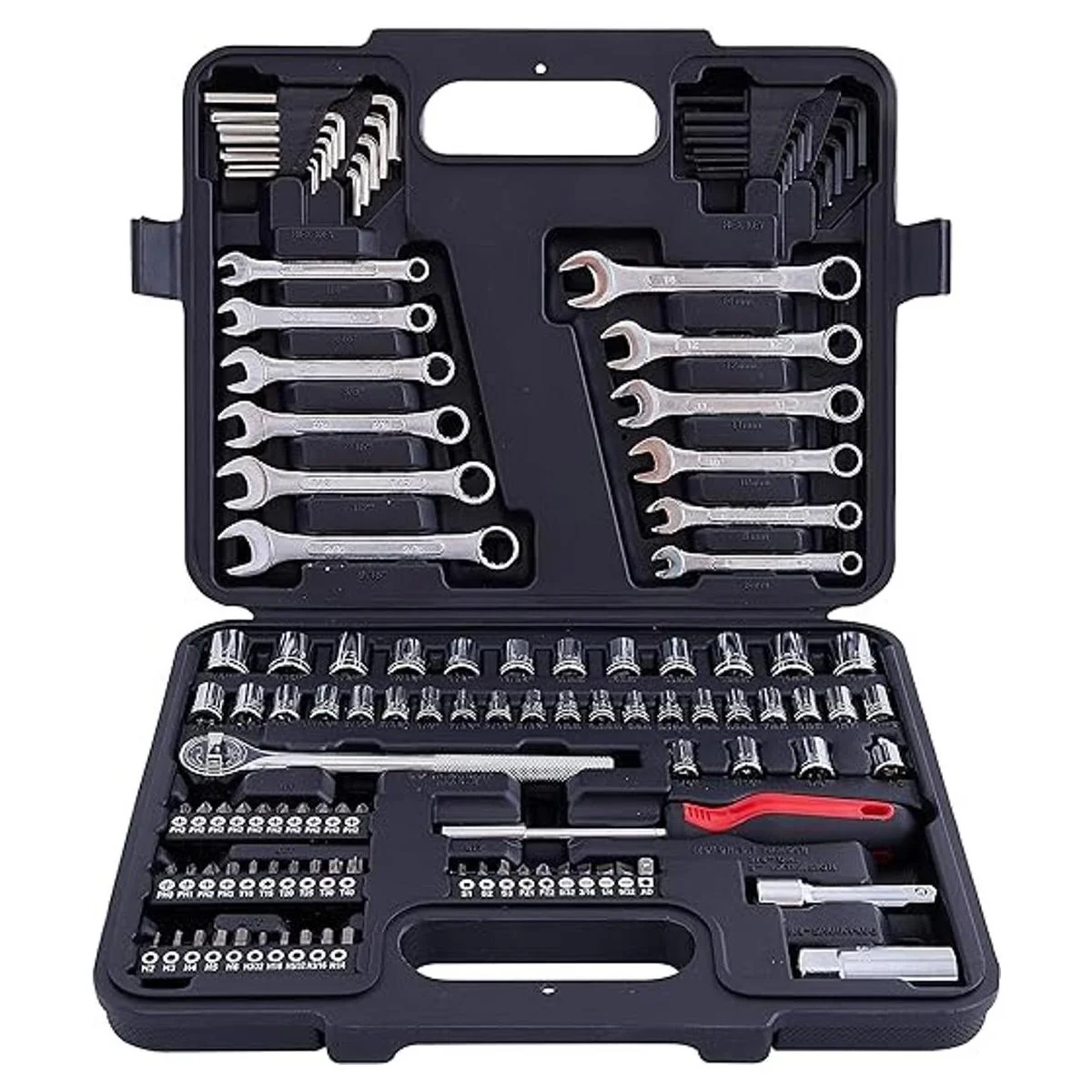 Variedad: contiene una amplia gama de tamaños SAE y métricos de llaves combinadas, enchufes de 3/8 y 1/4 pulgadas, mango de trinquete de 3/8 pulgadas, llave hexagonal y puntas de destornillador de 1/4 pulgadas