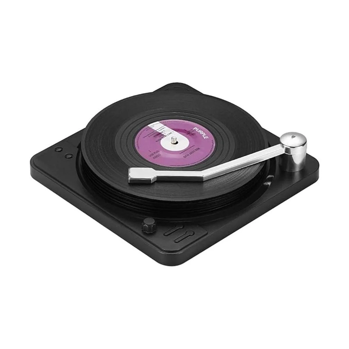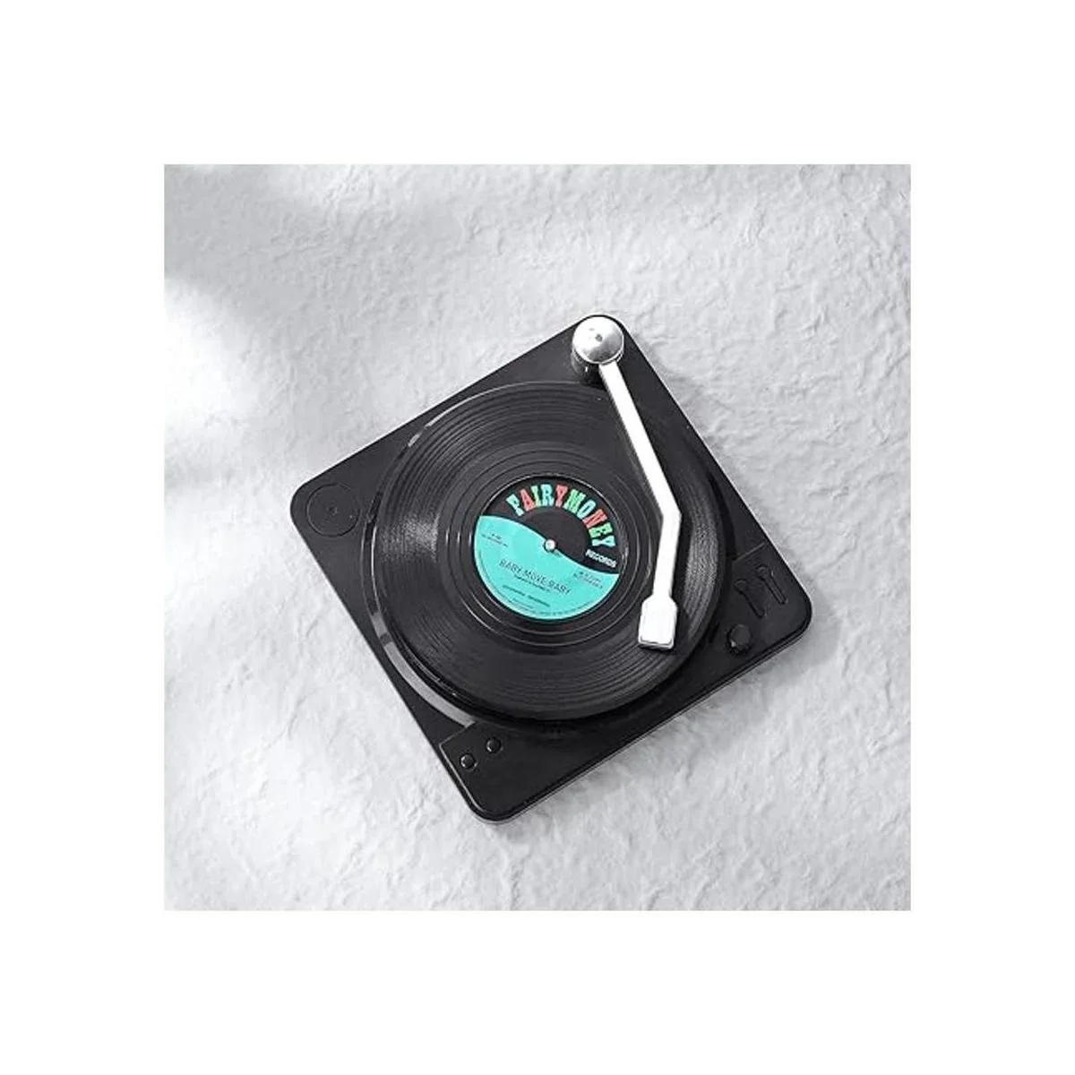 Atractivo soporte para reproductor de discos: este reproductor de discos de imitación de diseño inteligente parece que está listo para reproducir tus favoritos de música del pasado.