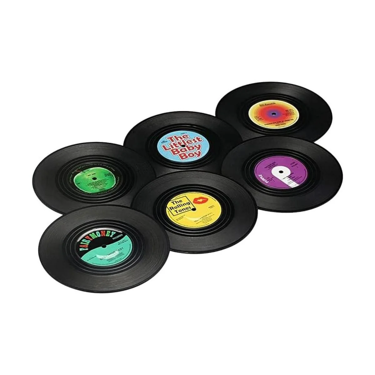 MECOWON Posavasos de vinilo con soporte para reproductor de discos, 6 unidades, posavasos geniales para los amantes de la música