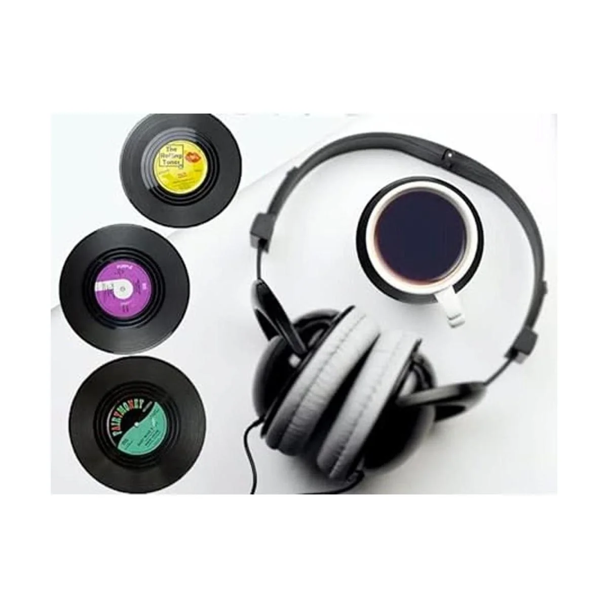 El paquete incluye: 6 posavasos de música y un soporte para tocadiscos en una caja de regalo.