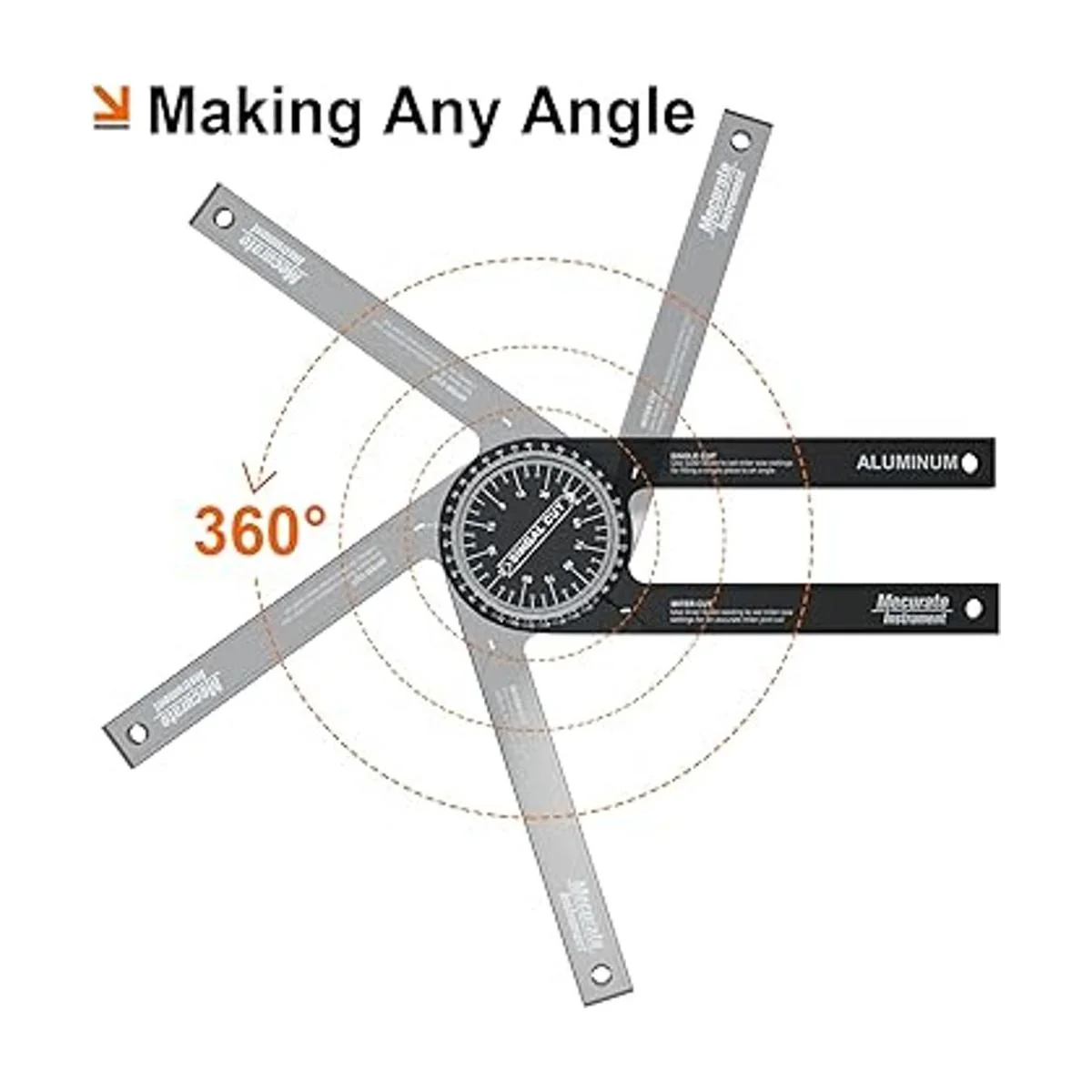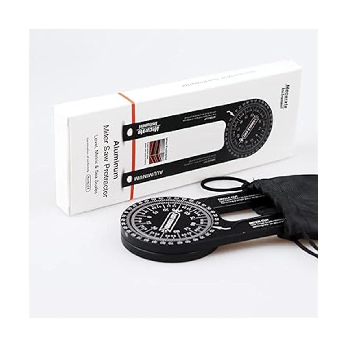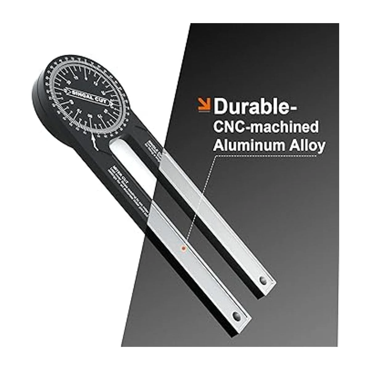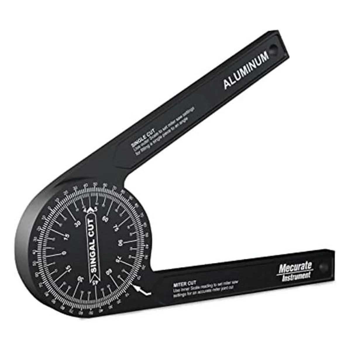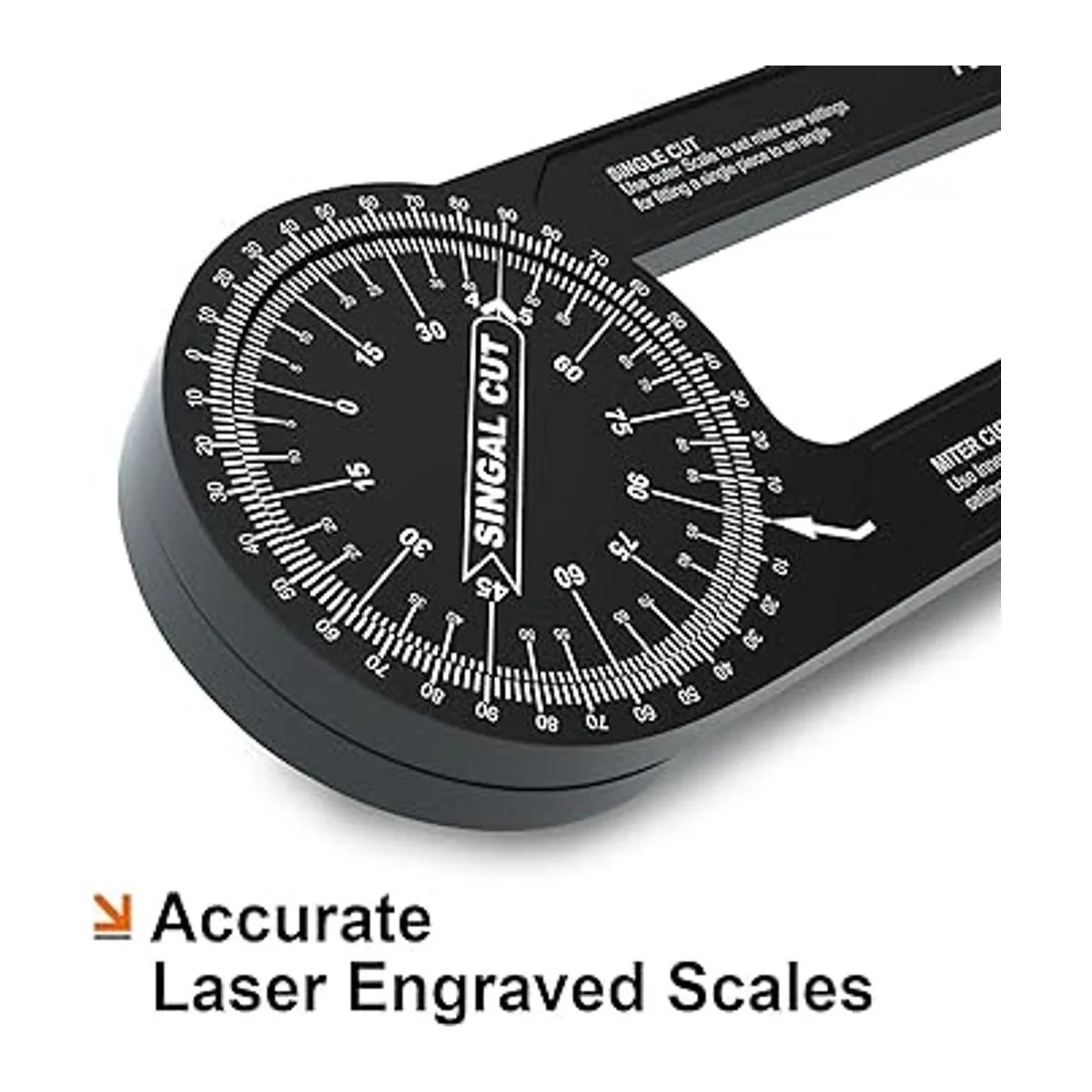 Mecurate Transportador de sierra ingletadora de aluminio, buscador de ángulo de 7.3 pulgadas con básculas grabadas con láser de precisión, herramienta de medición de rayo con función de rotación de 360 grados para carpinteros