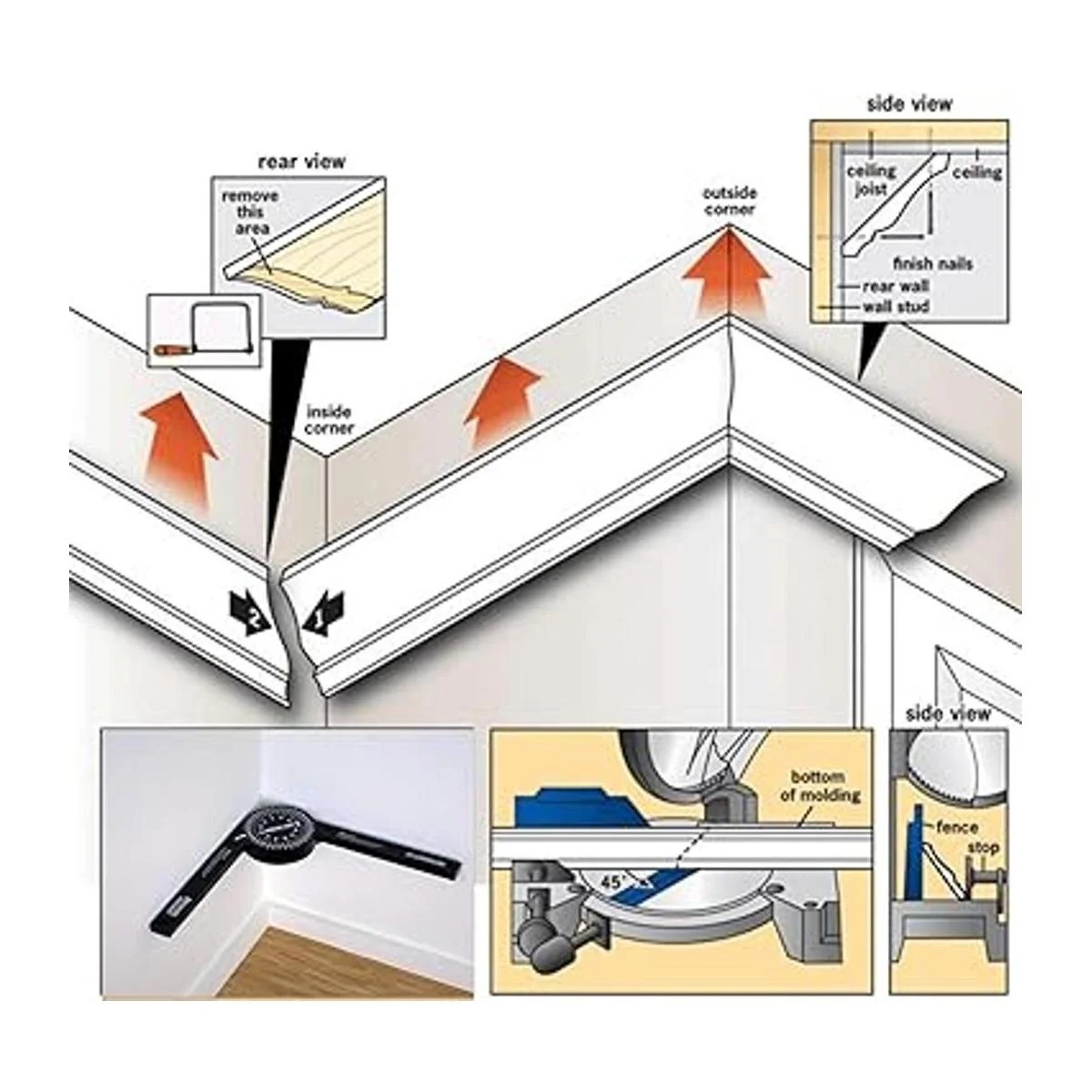 Versatilidad, no se perderá No importa si recortas la ventana y la puerta, o corta juntas ajustadas, estas herramientas de carpintería miden los ángulos para obtener la superficie correcta de las articulaciones. Es esencial para carpintería, molduras, fontanería y metalería.