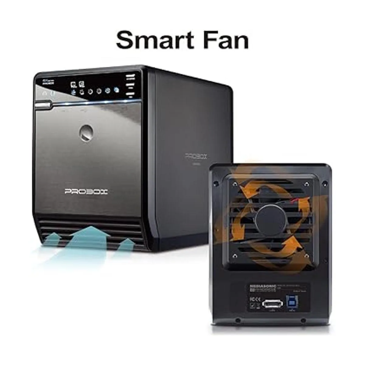 Sensor de temperatura integrado, ventilador inteligente con modo automático y manual, y selección de interfaz de un botón para cambiar USB 3.0 o eSATA
