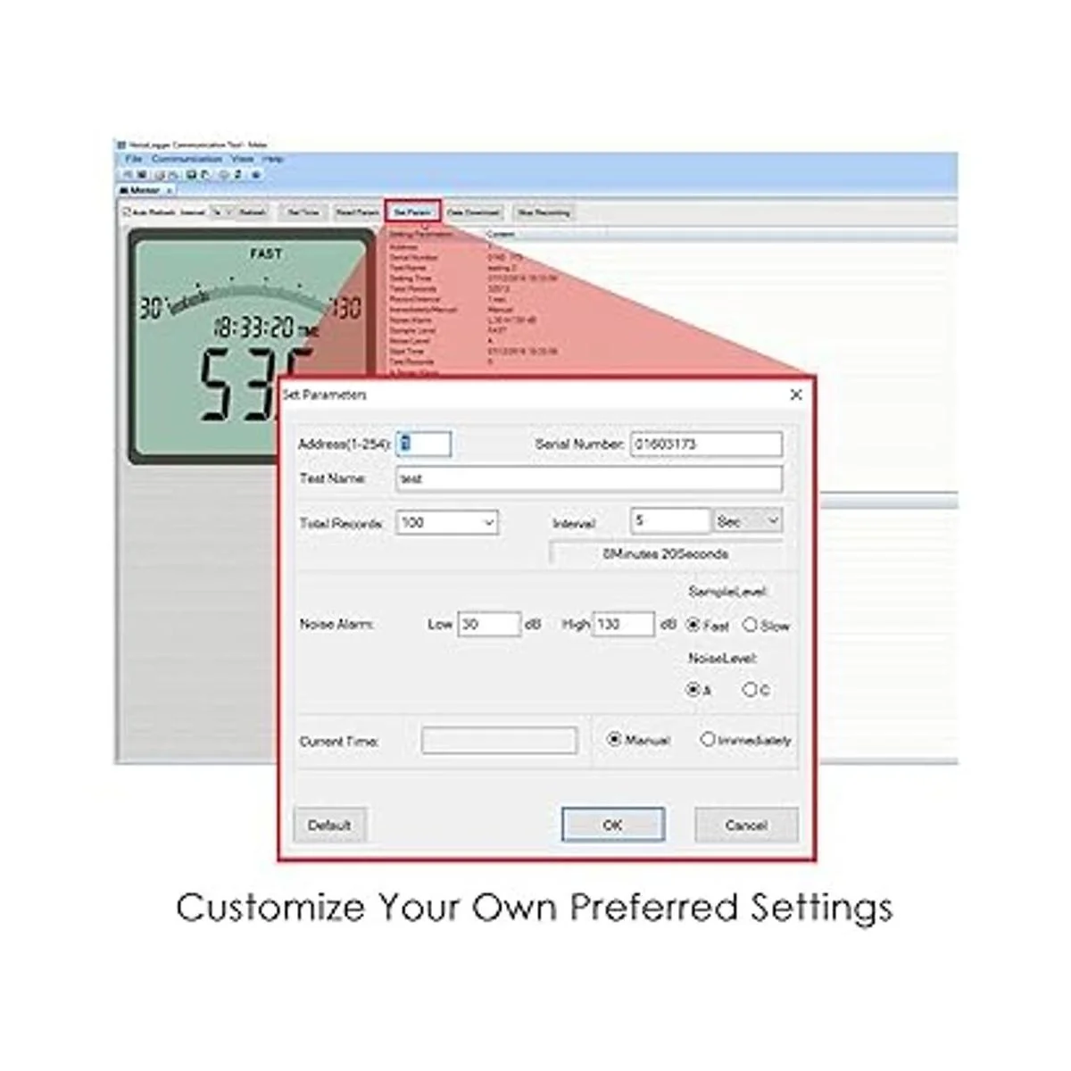 Puede leer entre 30 dB y 130 dB y capturar datos en un PC