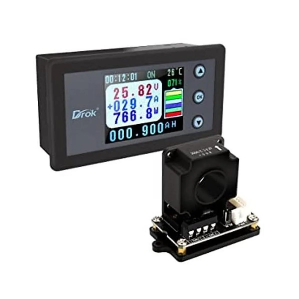 Medidor de potencia DROK DC 0120 V 300 A con pantalla LCD digital a color, monitor de temperatura de capacidad de potencia de batería, amplificador de voltios, ampímetro de voltímetro