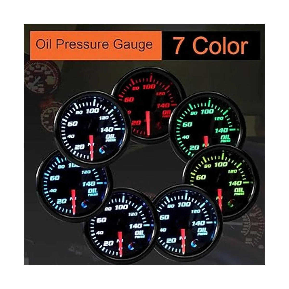 Medidor de presión de aceite de 7 colores, 0140 PSI, medidor de prensa de aceite de 2.047 in, retroiluminación LED de 2116 pulgadas, medidor de presión de aceite negro con sensor de presión de aceite