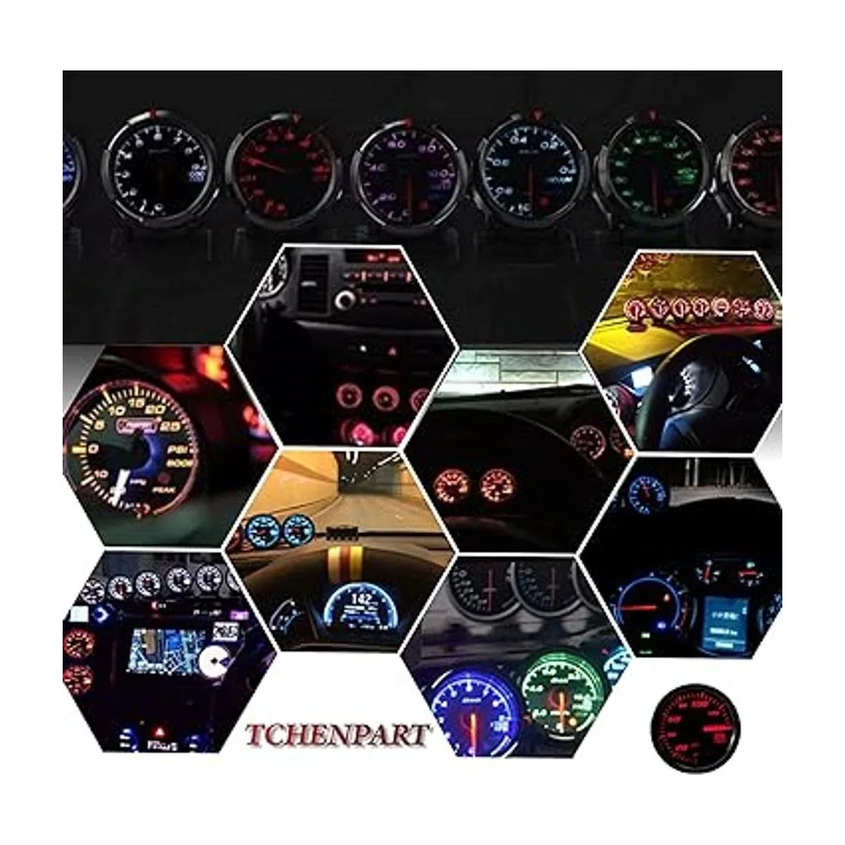 El medidor de aceite de 7 colores sólidos te permite combinar con las luces de tu salpicadero o añadir un estilo personalizado al interior de tu vehículo. El botón de la lente puede cambiar el color de la luz que desees, esta característica es útil para mejorar la visibilidad cuando conduces por la noche.