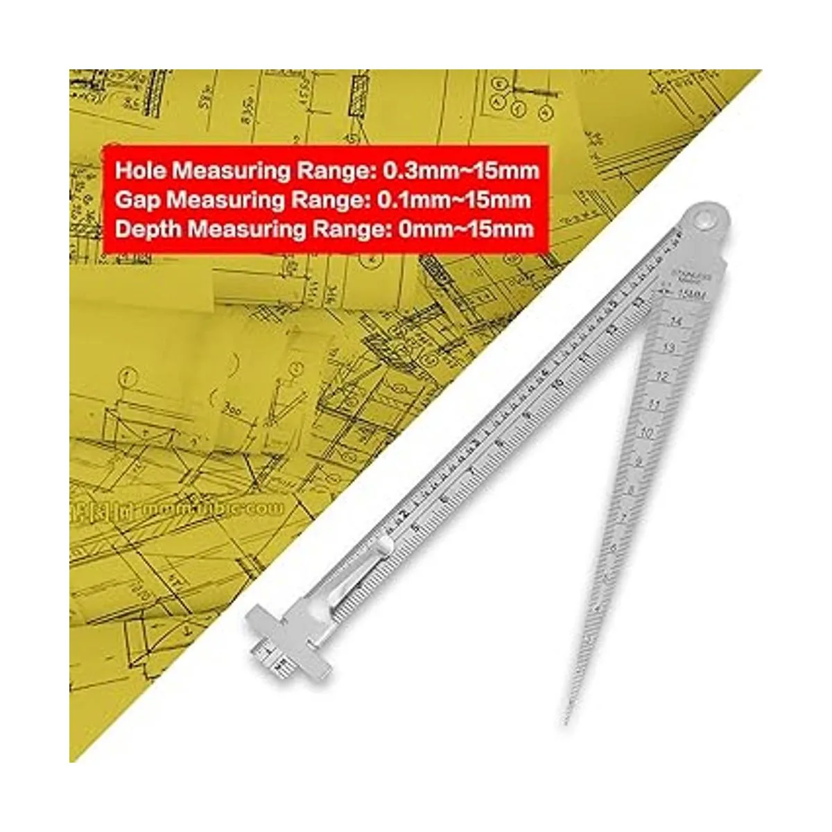 Diseño de dos piezas para una fácil medición: este calibre de brecha está diseñado con dos partes para una medición fácil y conveniente, y una parte de ellas se puede utilizar para medir la brecha, y la otra parte se utiliza para medir la profundidad, se puede utilizar para medir la construcción, ferrocarriles, electricidad, cerámica sanitaria, parabrisas de automóvil y troquelado, etc.
