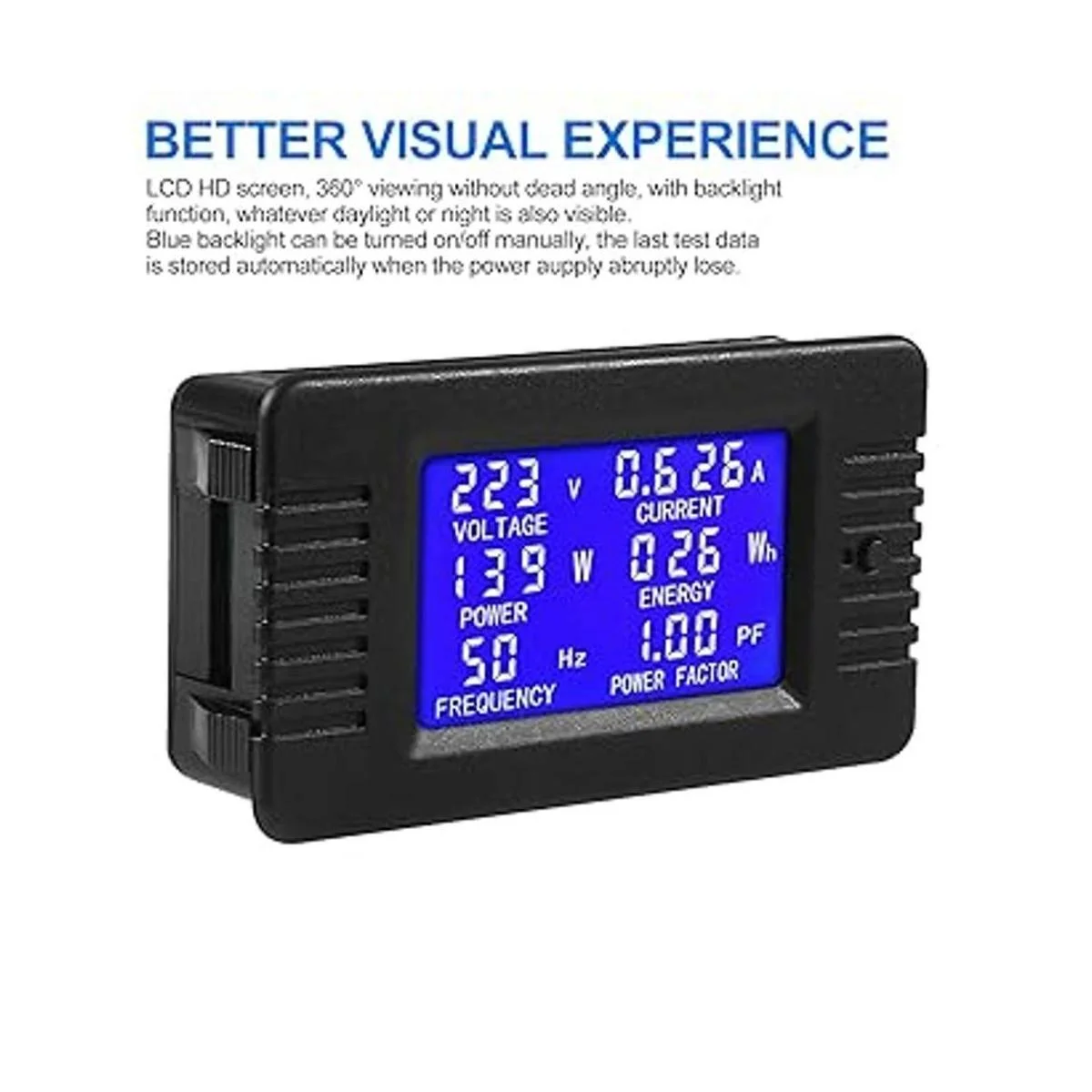 6 en 3.3 ft: la gran pantalla transparente puede mostrar el voltaje/corriente/potencia activa/energía acumulativa/frecuencia/factor de potencia al mismo tiempo.