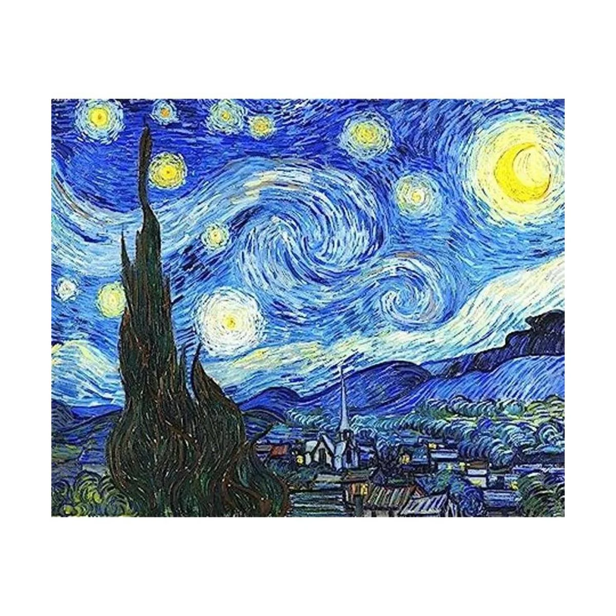 Meecaa Paint by Numbers Van Gogh Starry Sky Kit de luna abstracta para adultos, pintura al óleo para principiantes, 16.0 x 20.0 in cielo estrellado, sin marco