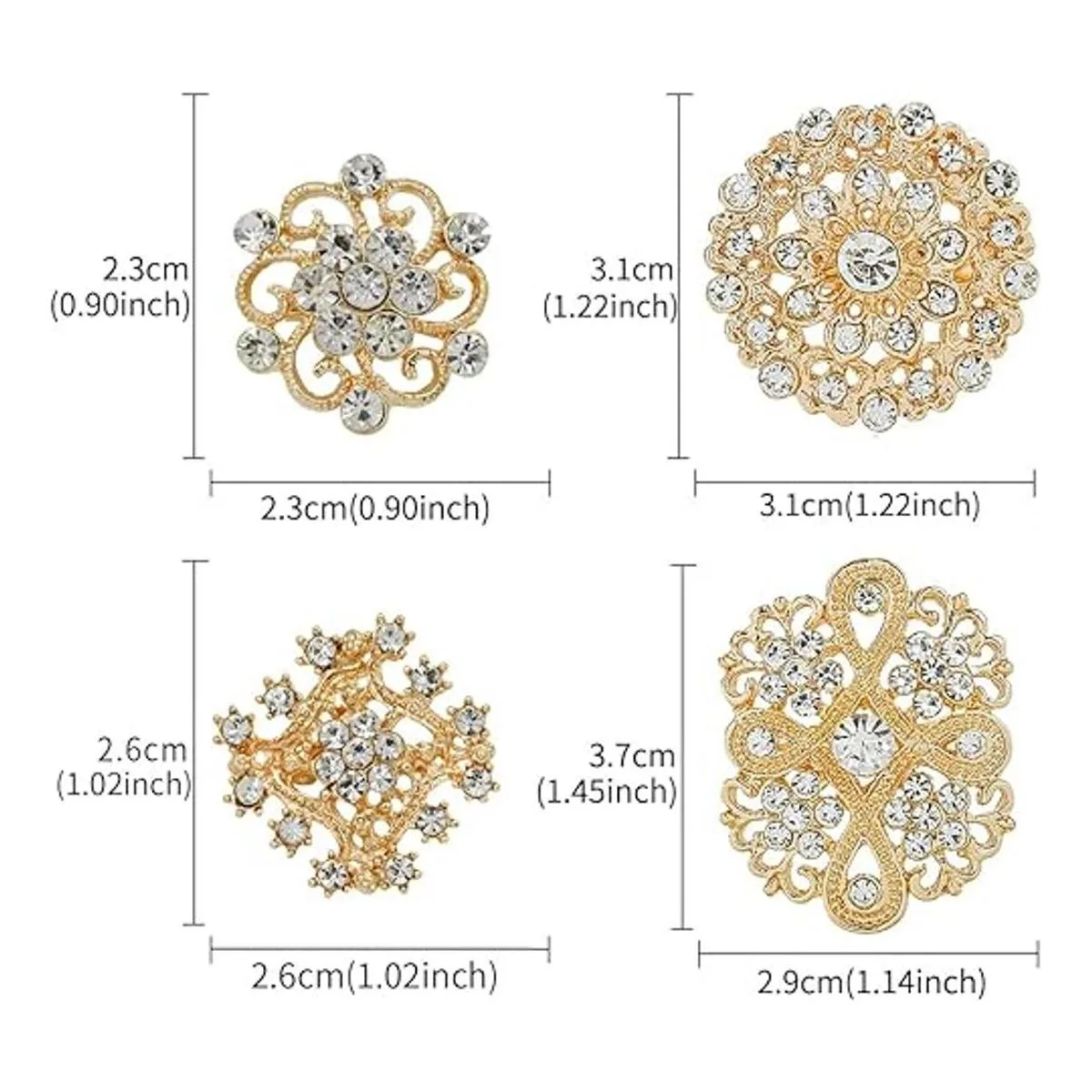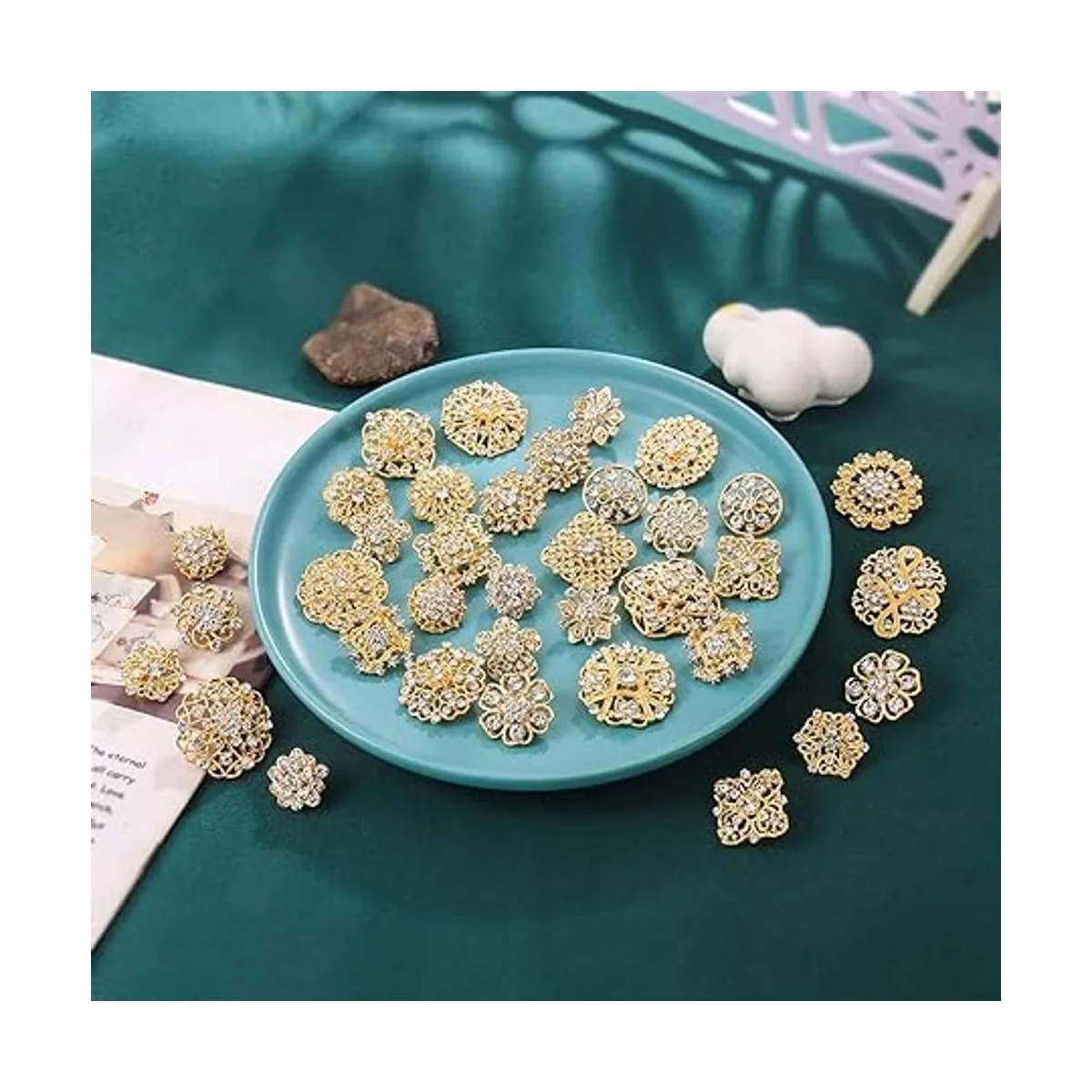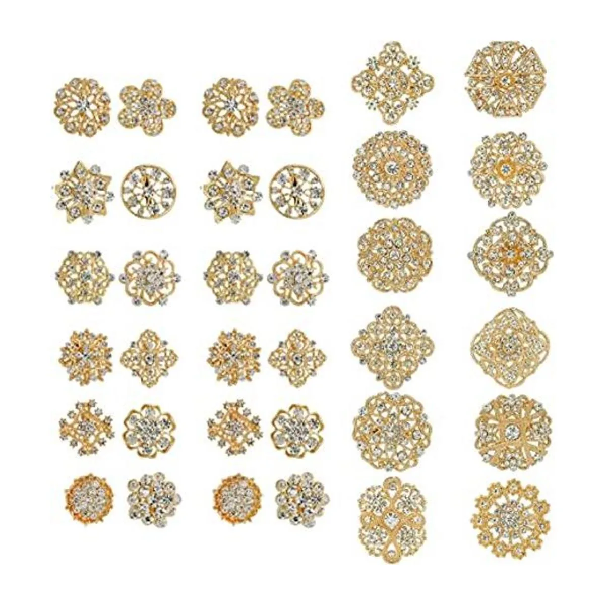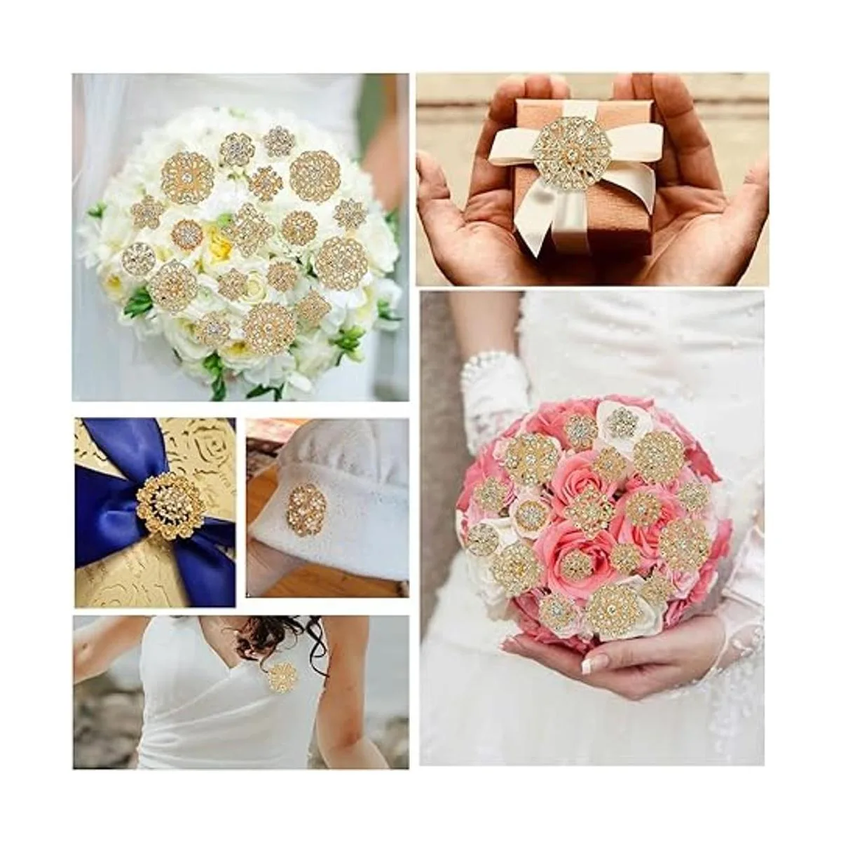 MEEDOZ Broches de ramo de boda para mujer, 36 piezas de broches de flores de diamantes de imitación de cristal para bricolaje y fiesta oro, 36 piezas