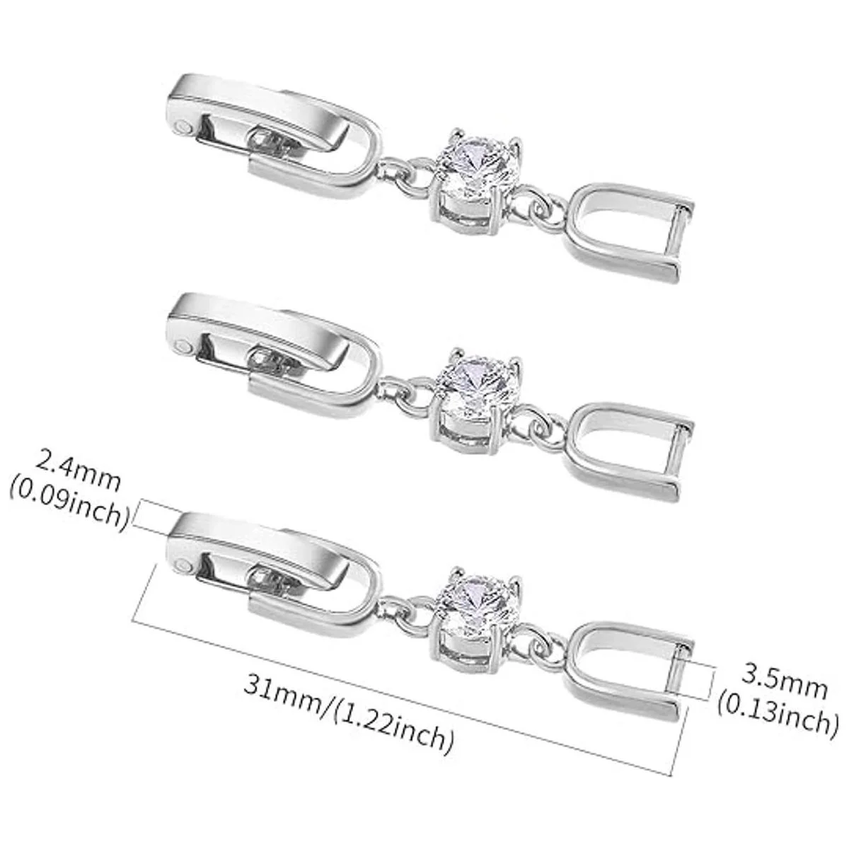 Tamaño: la longitud es de aproximadamente 1.220 in, el ancho interno es de aproximadamente 0.138 in, como se muestra en la segunda imagen. Asegúrate de medir tu artículo antes de comprar, ya que este cierre de extensión plegable es muy pequeño y pequeño