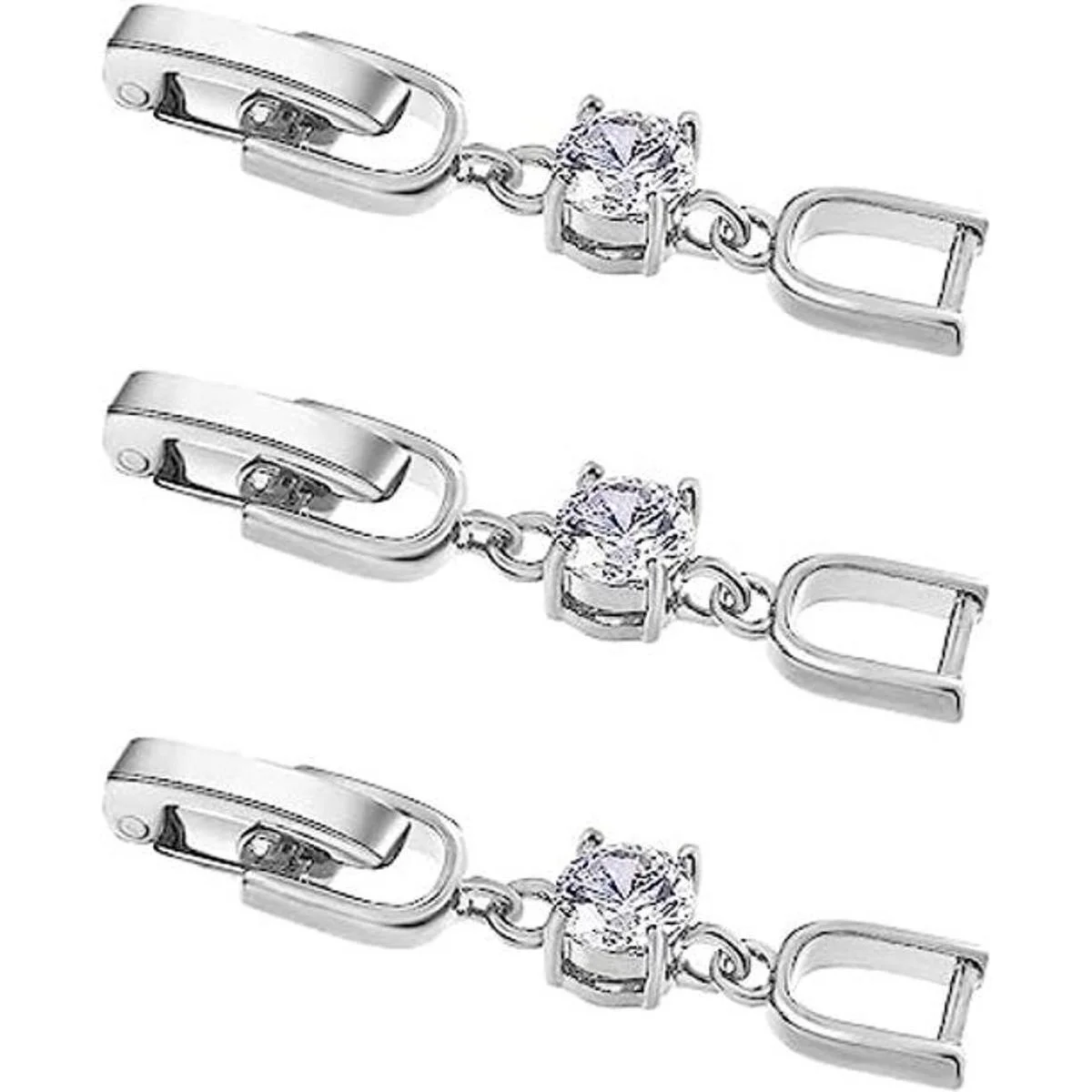 MEEDOZ Extensores de collar y pulsera, 3 piezas de diamantes de imitación chapados en oro blanco, juego de cierre de extensión plegable para hacer pulseras, collares y joyas oro blanco