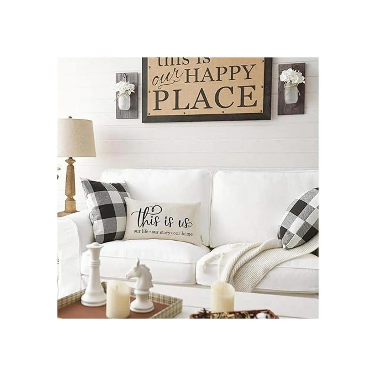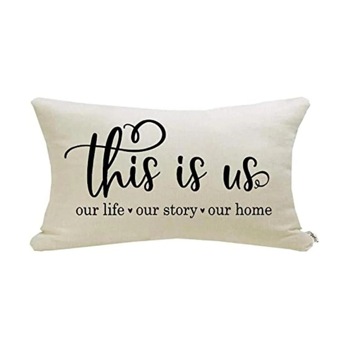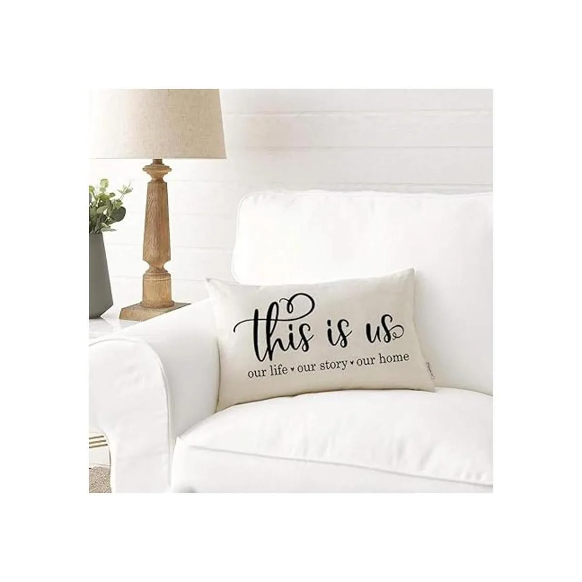 Meekio Farmhouse Fundas de cojín con cita en inglés ,This is Us 12pulgadas x 20 pulgadas, almohadas lumbares de la granja con decoración rústica para regalos de inauguración de la casa , decoración de la habitación familiar