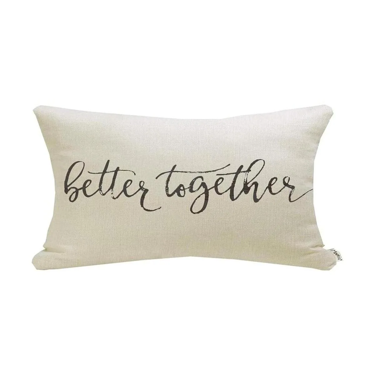 Meekio Fundas de almohada de granja con cita Better Together de 12 x 20 pulgadas, decoración rústica de granja, fundas de almohada lumbar, con refranes, regalos de inauguración de la casa, decoración de habitación familiar