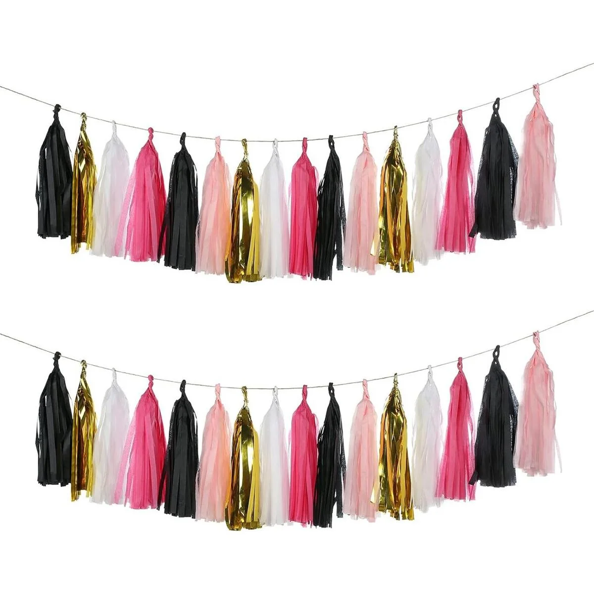 Mefuny 25 borlas de tejido para fiestas de novia, color rosa, dorado, negro, blanco