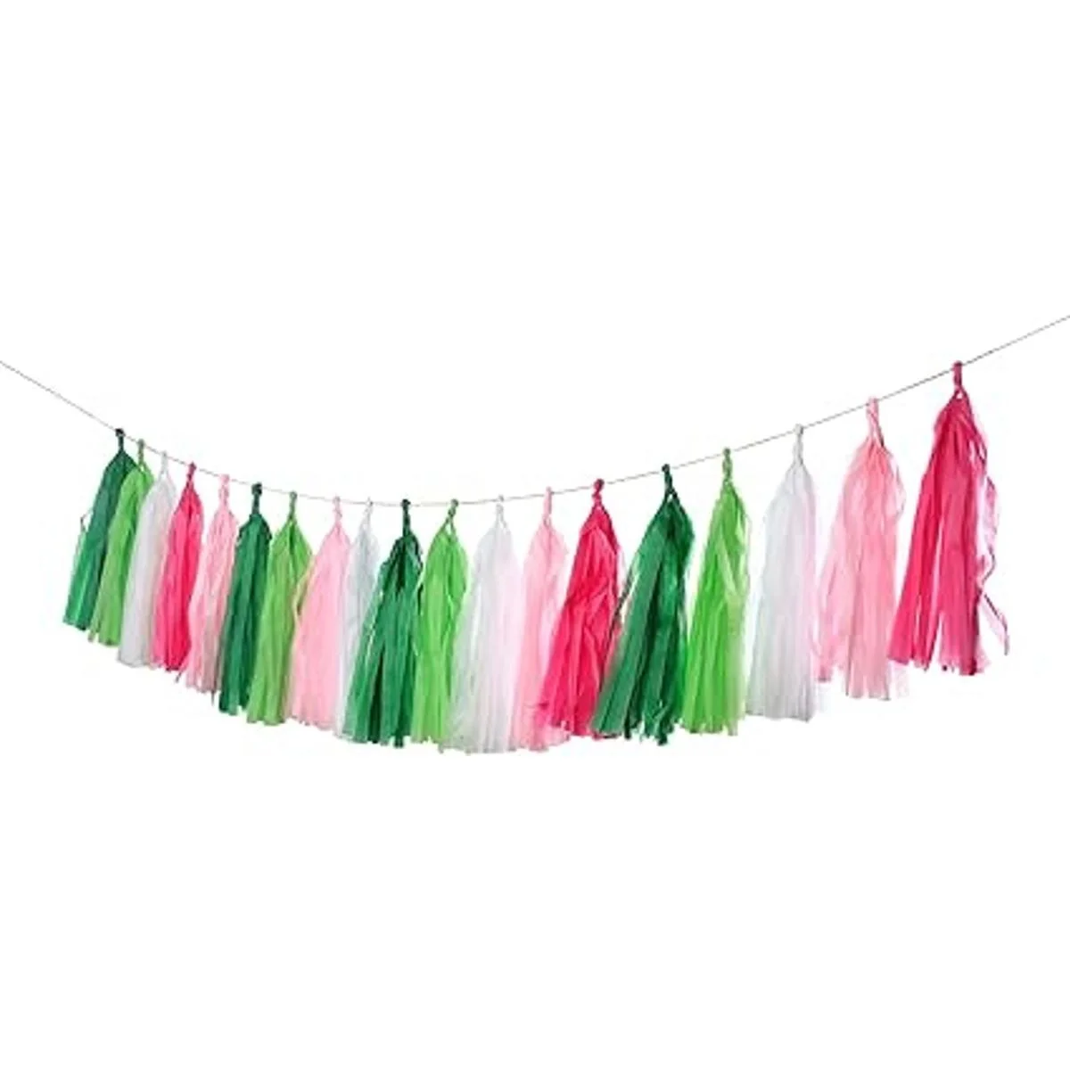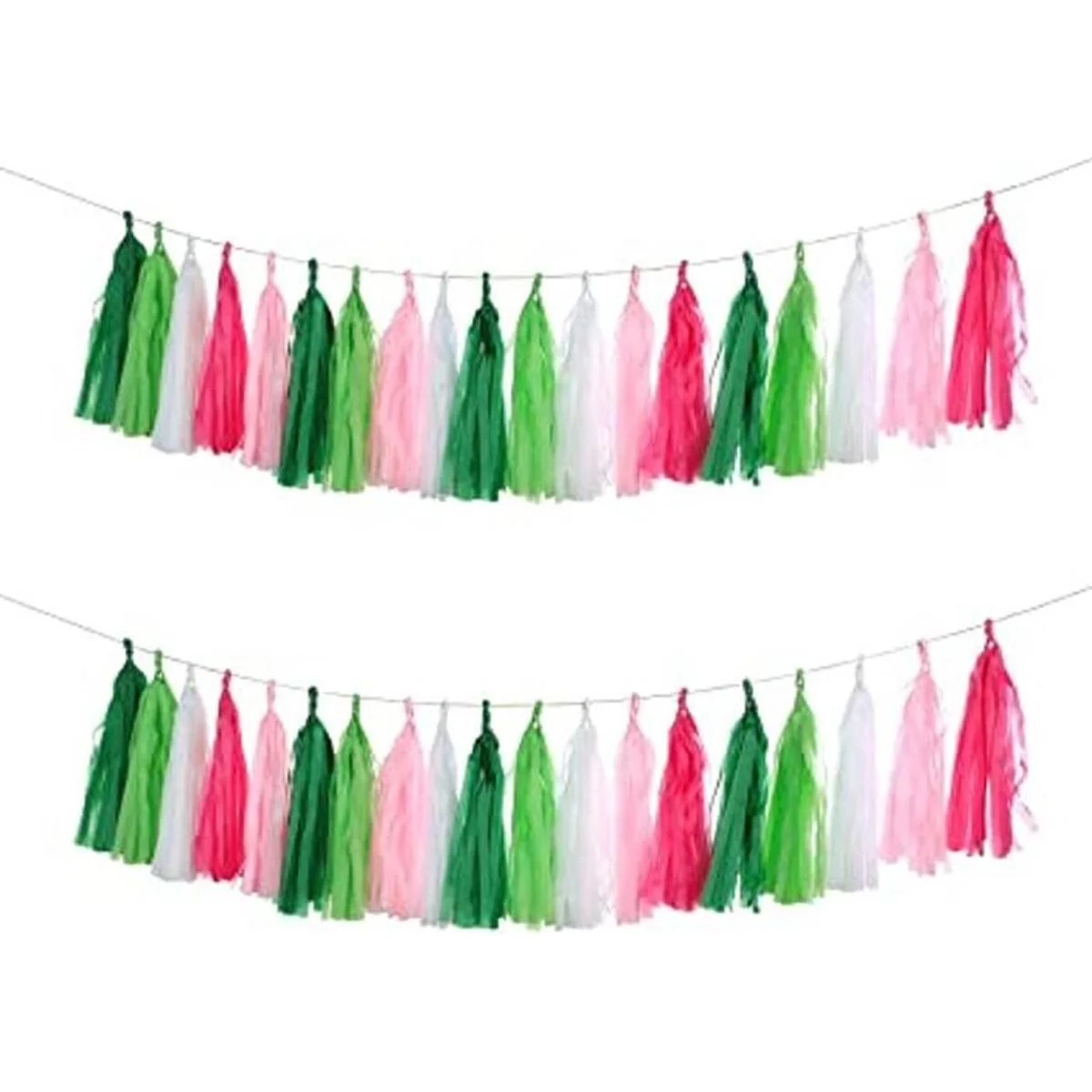 Cantidad: 25 borlas, 5 hojas de un color, 13.4 in de largo para cada borla. Viene con 25 borlas, un trozo de cuerda de yute e instrucciones idioma español no garantizado.