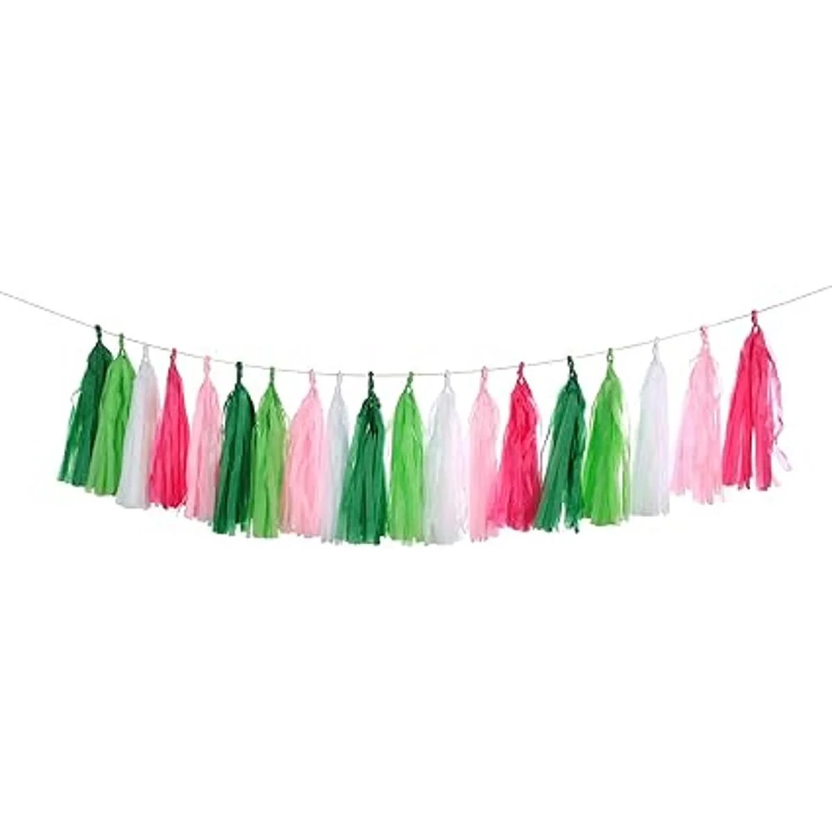 Mefuny 25 piezas DIY guirnalda de pañuelos hawaiana fiesta de verano tropical Flamingo decoración de fiesta, rosa caliente verde bandera perfecta para baby shower nupcial ducha cumpleaños decoración fiesta