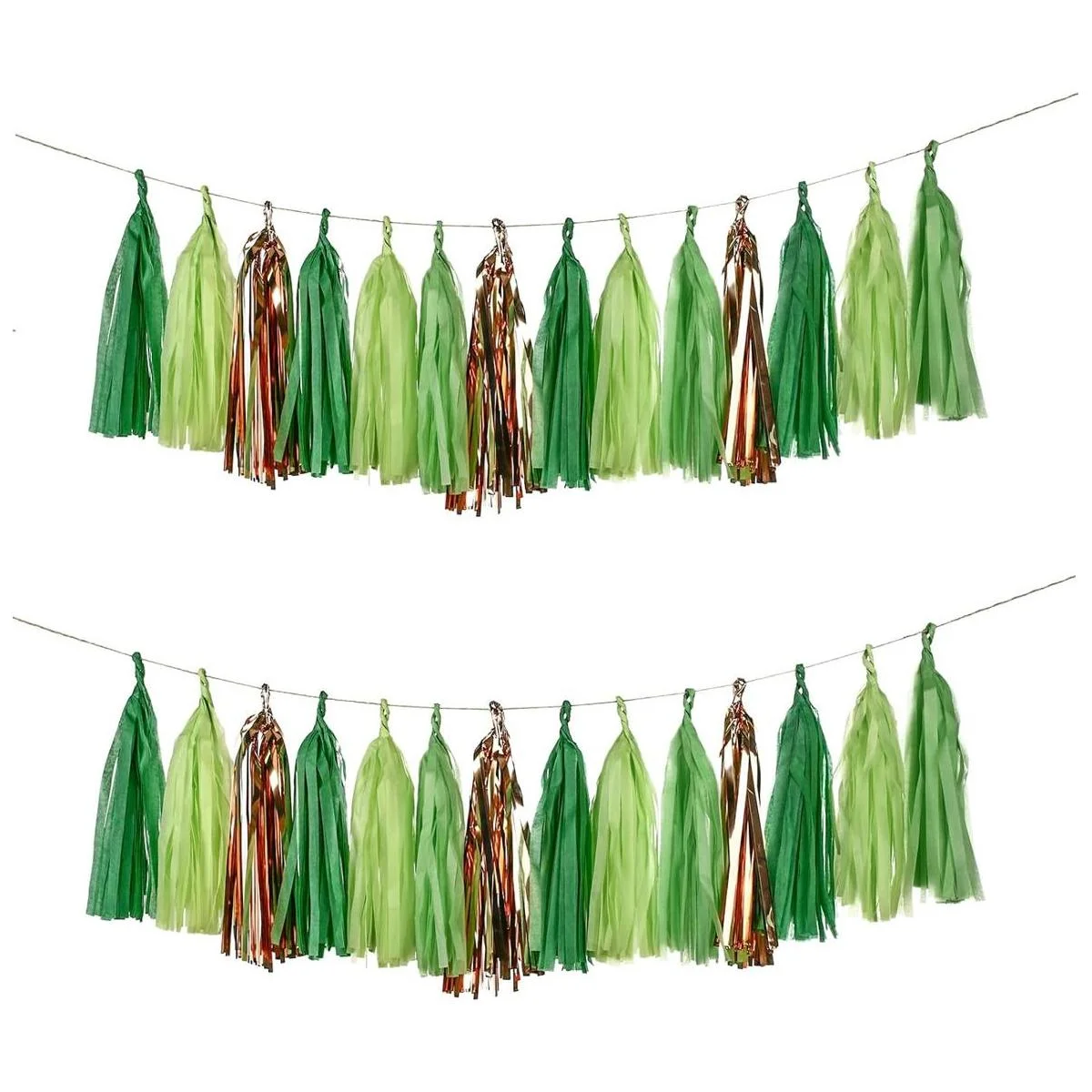 Estas guirnaldas de papel de seda son perfectas para combinar con banderines de papel dorado, pancarta de feliz cumpleaños, flor de abanico de papel de seda y globo.