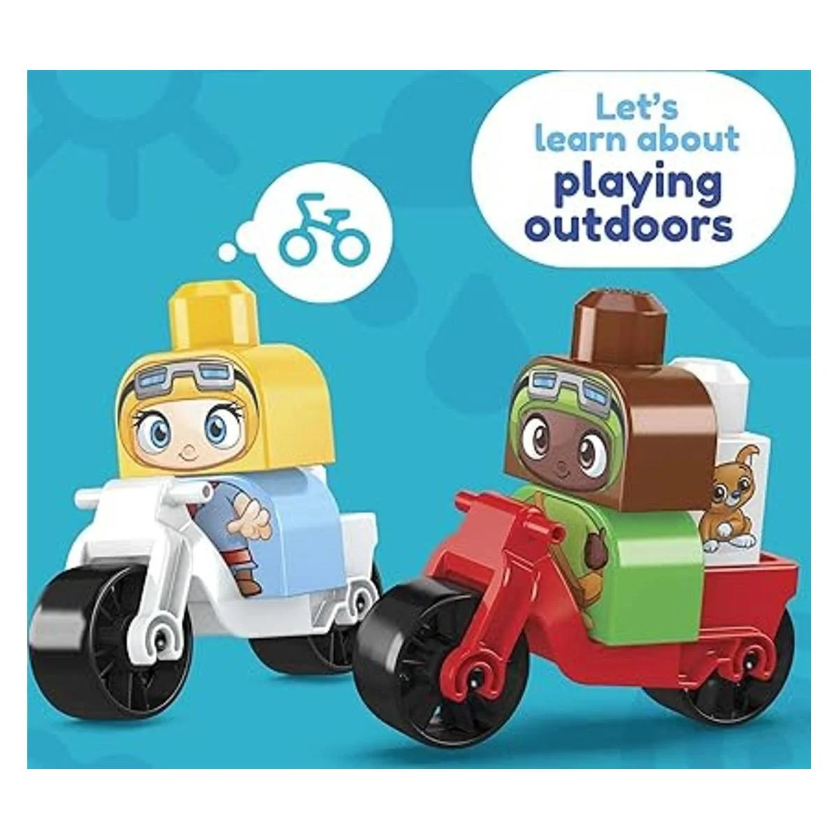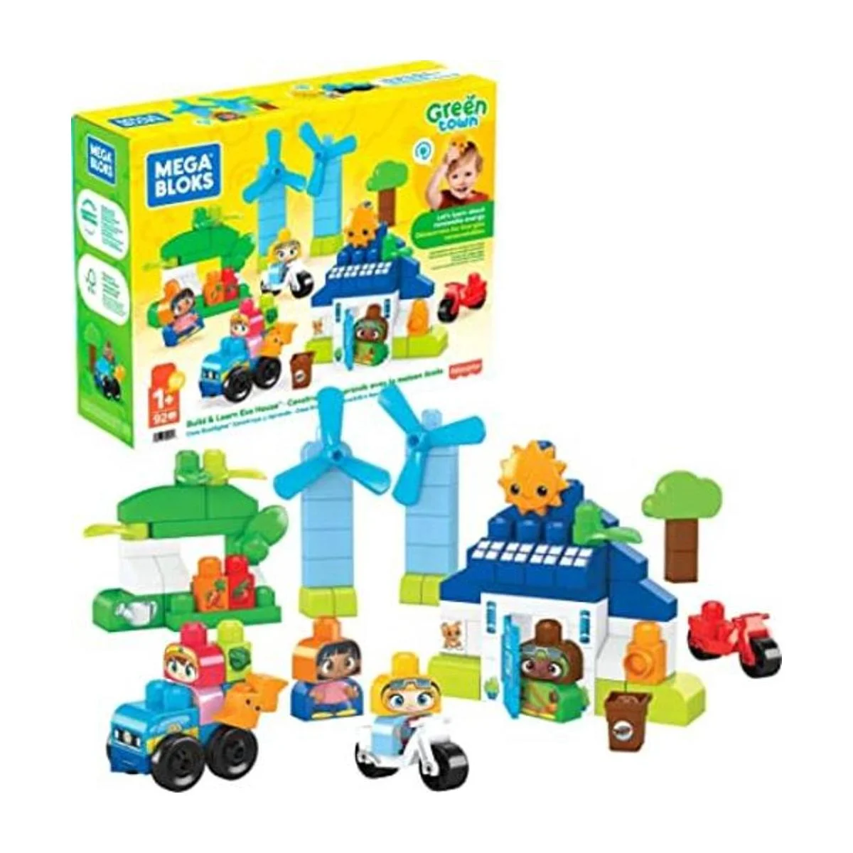 Mega Bloks Juegos de construcción de juguetes, Green Town Build Learn Eco House con coches, bicicletas y figuras de amigos de bloque para niños pequeños de 1 a 3 años Exclusivo de Amazon