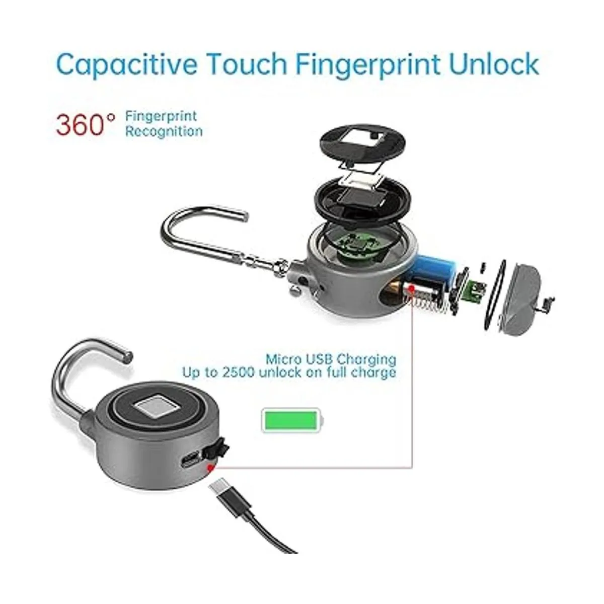 Largo tiempo de funcionamiento : los candados inteligentes MEGAFEIS tienen un menor consumo de energía y un tiempo de espera más largo. La batería de litio recargable por USB de 150 mAh puede soportar hasta 6 meses de tiempo de espera o 2 meses 2500 veces de desbloqueo con una sola carga. Cuando no esté de batería, el bloqueo inteligente permanecerá bloqueado, simplemente conéctalo a una fuente de alimentación USB y recupera.