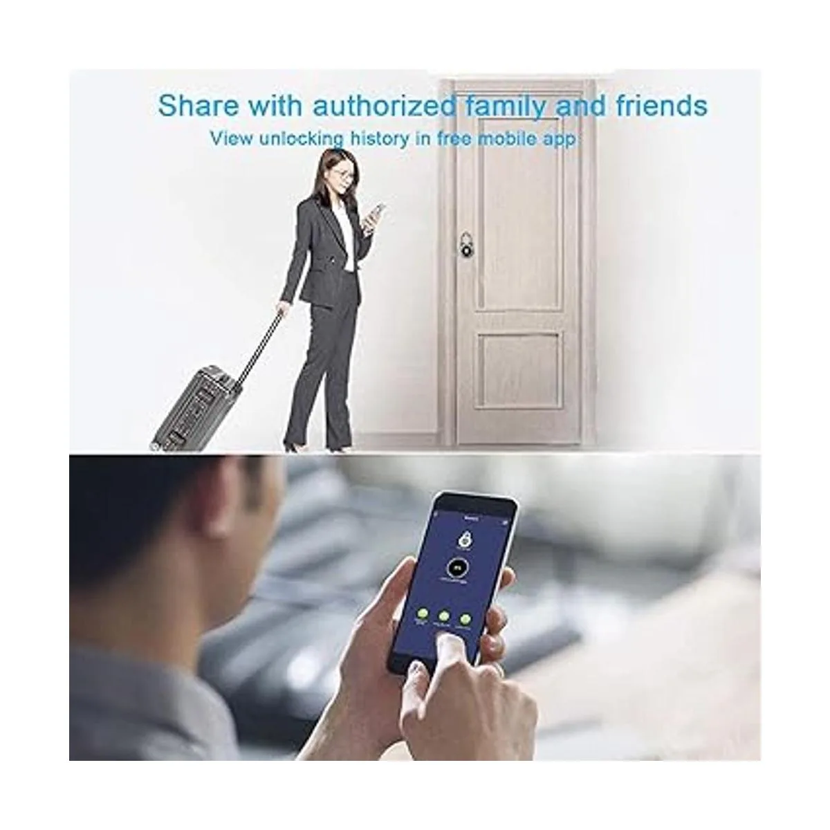 Función Bluetooth: conecta el candado inteligente a la aplicación móvil gratuita por Bluetooth. Puedes utilizar la aplicación para registrar huellas dactilares, desbloquear, establecer usuarios autorizados, comprobar las últimas 1000 actividades de desbloqueo, etc.