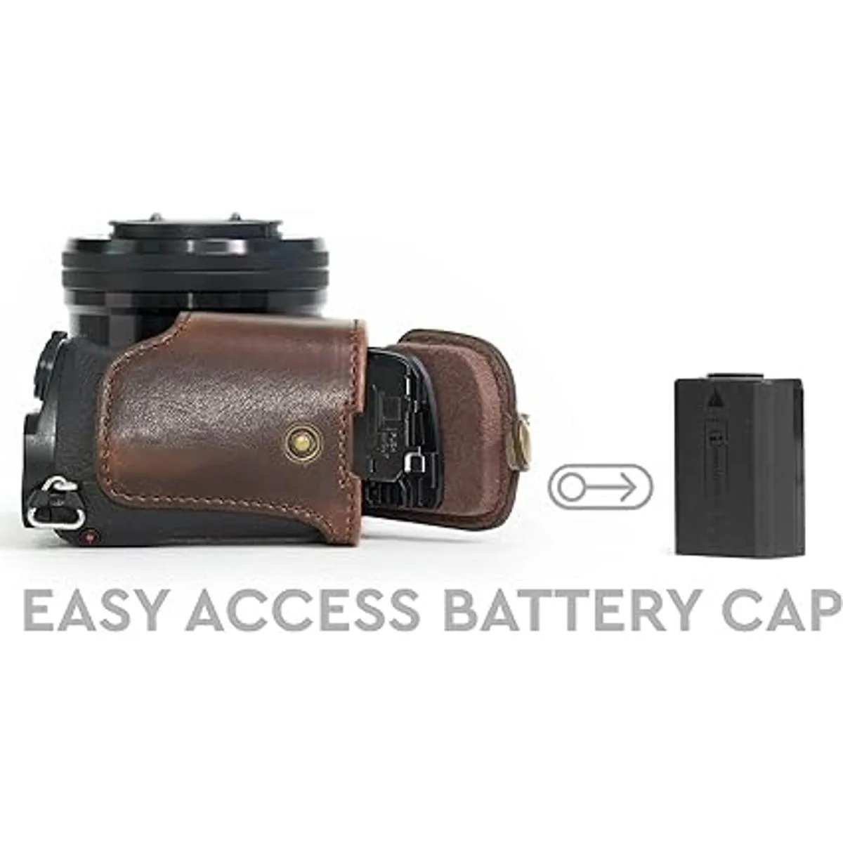 Ajuste perfecto: la media funda de piel MegaGear Premium con acceso a la batería está específicamente diseñada con cuero de alta calidad para los modelos Sony Alpha A6300, A6000.