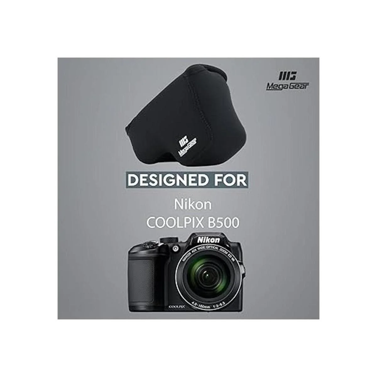 MegaGear Funda de neopreno con mosquetón para cámara digital Nikon COOLPIX B500, color negro