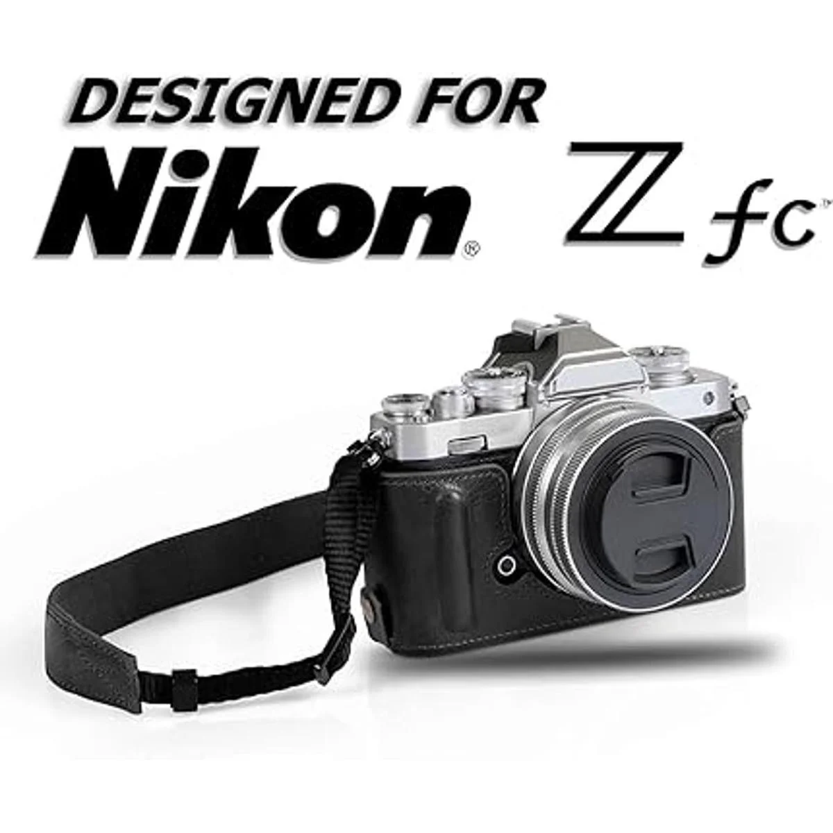 Ajuste a medida: la media funda MegaGear de piel auténtica para cámara con acceso a la batería está específicamente diseñada con cuero de alta calidad para los modelos Nikon Z FC para un ajuste y cobertura precisos.