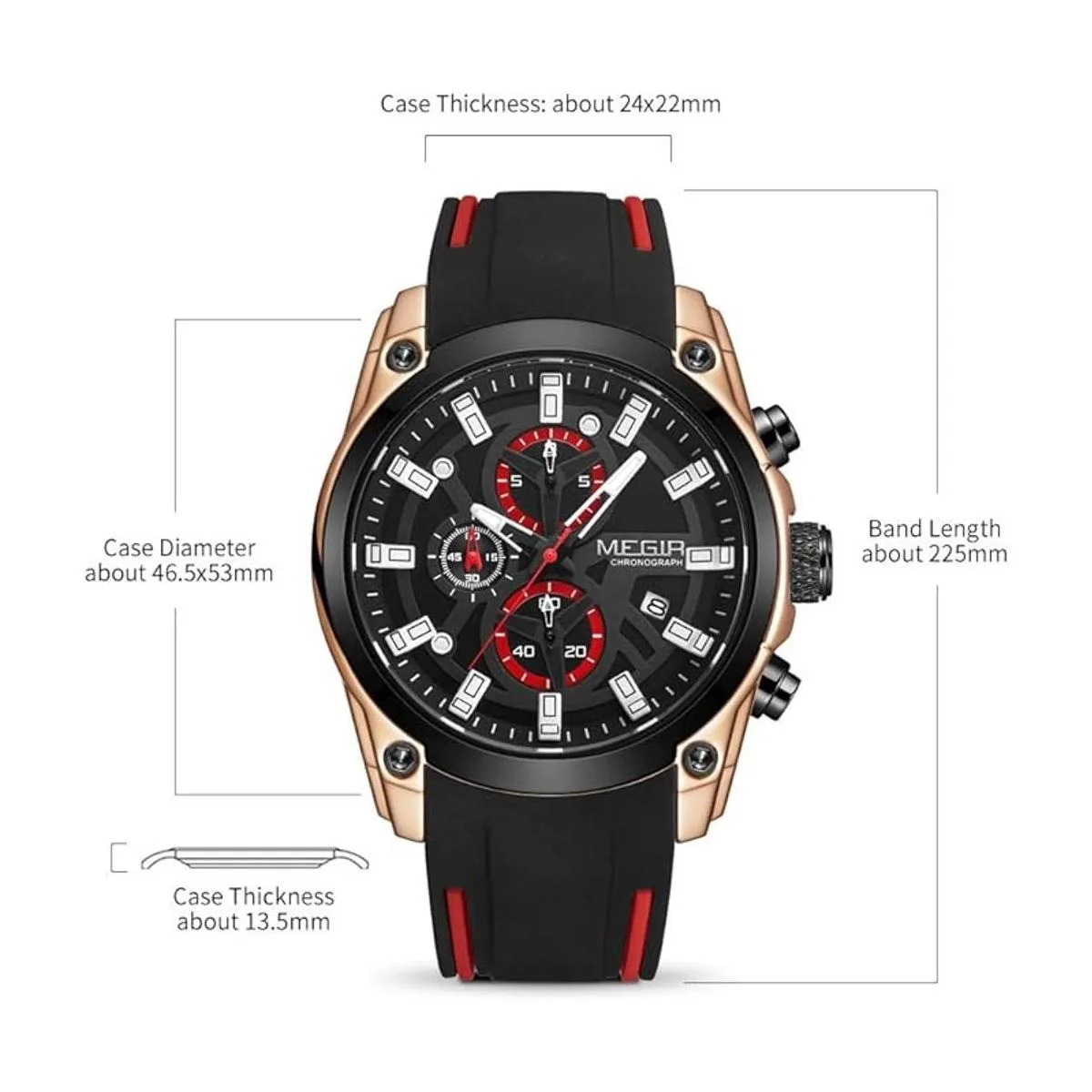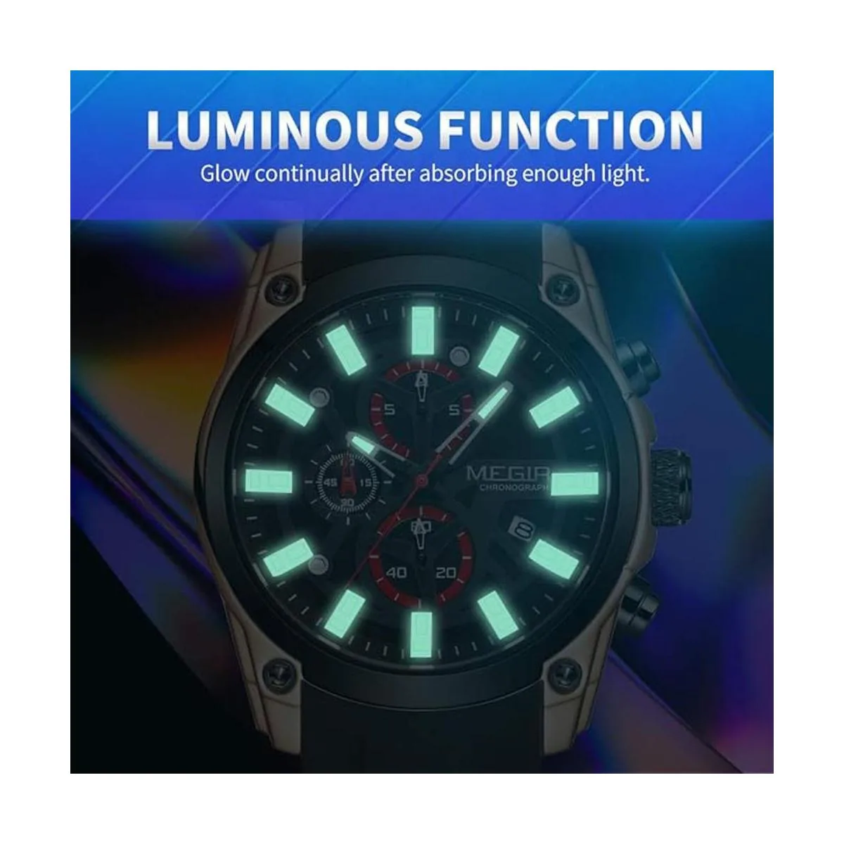 MEGIR Reloj de cuarzo analógico deportivo con cronógrafo luminoso para hombre con correa de silicona de moda