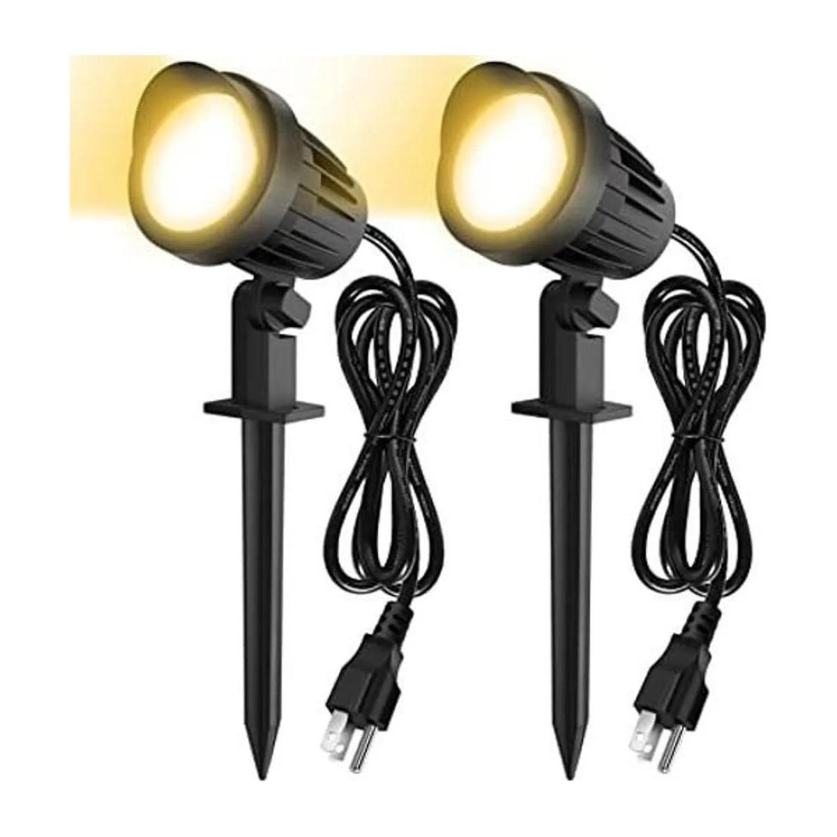 MEIKEE Luces LED de paisaje de 9 W IP66 impermeables al aire libre 110 V COB, luces de camino para patio, césped, jardín con 3 enchufes de EE. UU. 3000 K luces blancas cálidas paquete de 2