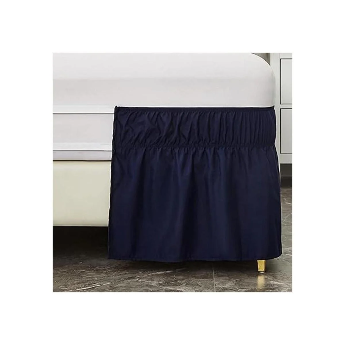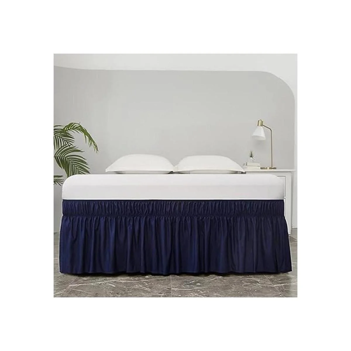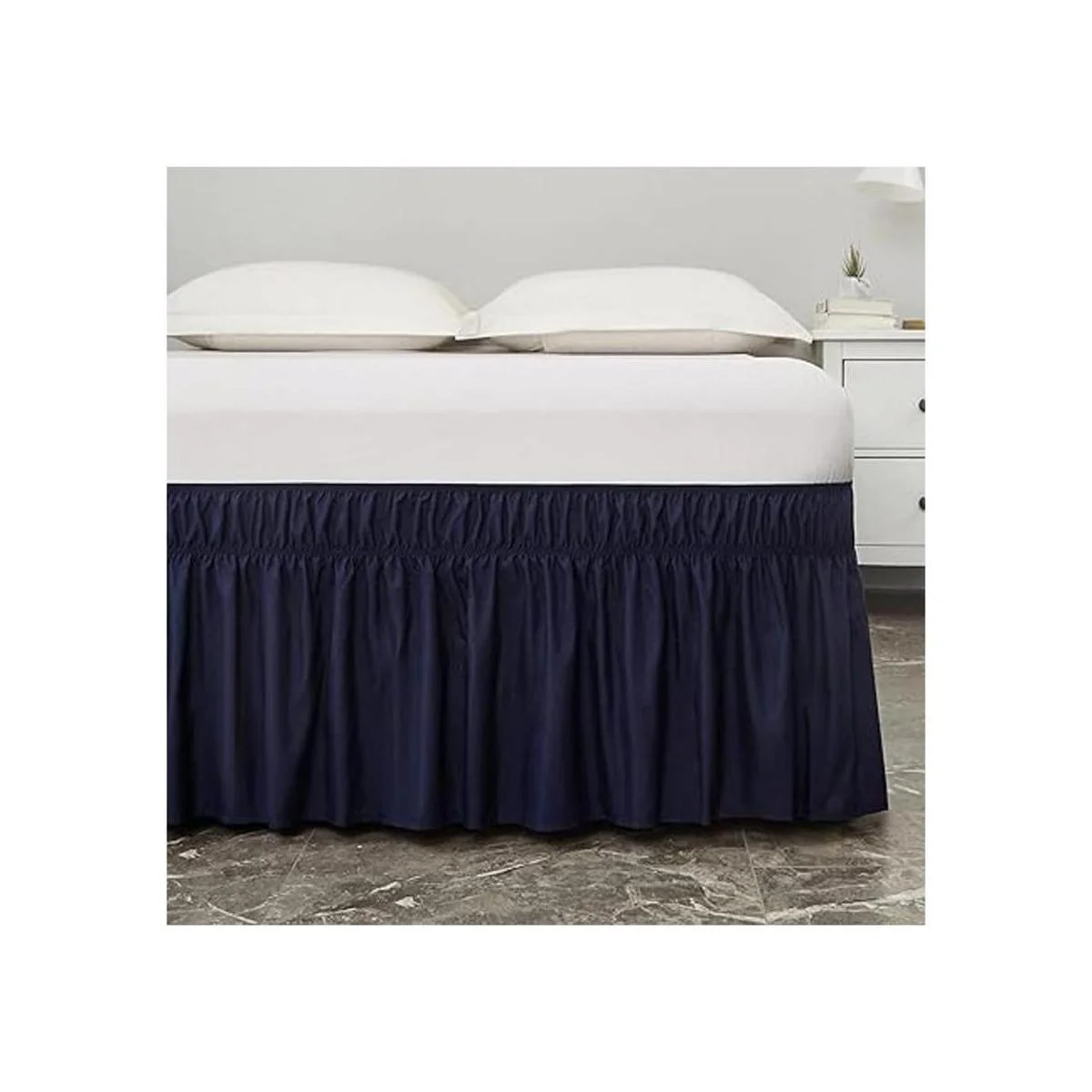 MEILA Falda de cama envolvente de tres lados de tela, elástico con volantes de polvo de 24 pulgadas, caída a medida, fácil de instalar, resistente a la decoloración, azul marino, QueenKing