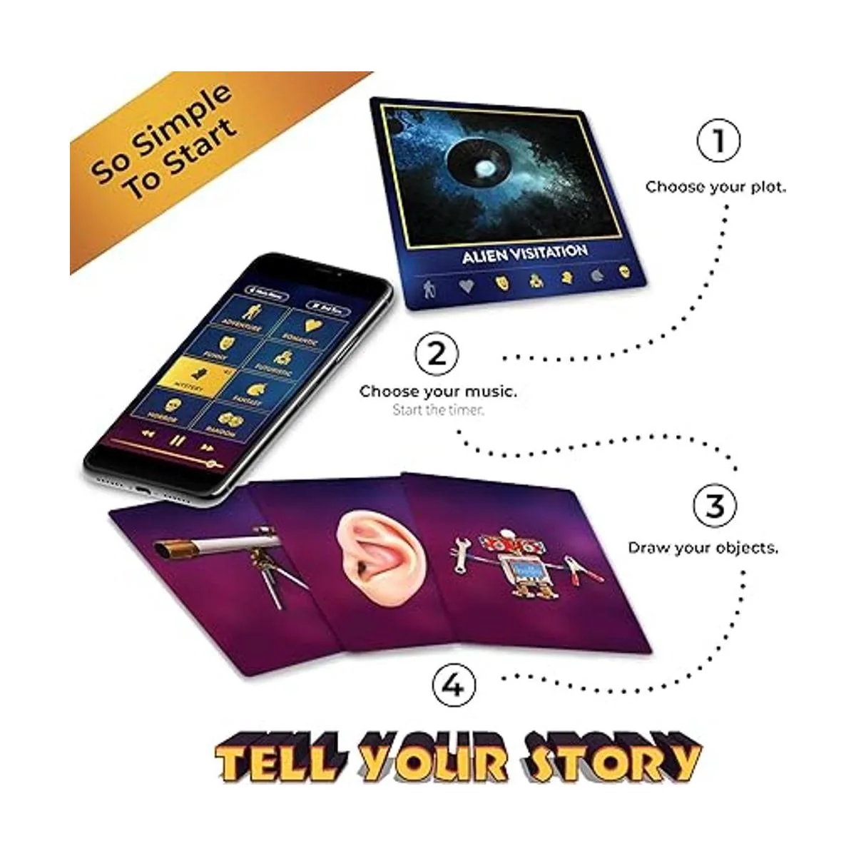 El juego de narración social: un gran juego de fiesta que hará que todos hablen y se rían juntos. Diversión para niños, adolescentes y adultos en grupos grandes o pequeños. Perfecto para la noche familiar. Una ronda se puede reproducir en tan solo 3 minutos con suficientes tarjetas y música para soportar horas de juego.