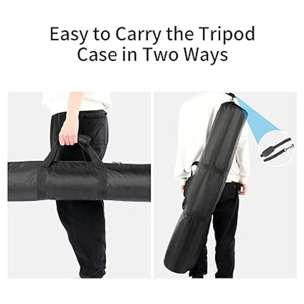 Fácil de llevar la funda del trípode de dos maneras: el asa y la correa de hombro ajustable con hebillas de liberación rápida ayudan a llevar tu trípode de forma más cómoda y fácil