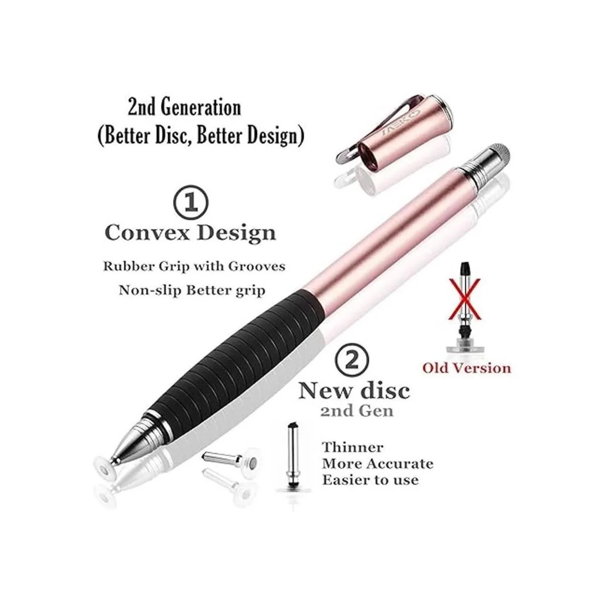 MEKO 2 generación Serie de precisión 2 en 1 Lápiz digital de disco universal para iPhone, iPad, todas las demás pantallas táctiles capacitivas con 6 puntas de repuesto, paquete de 3 negrooro rosaazul aguamarina