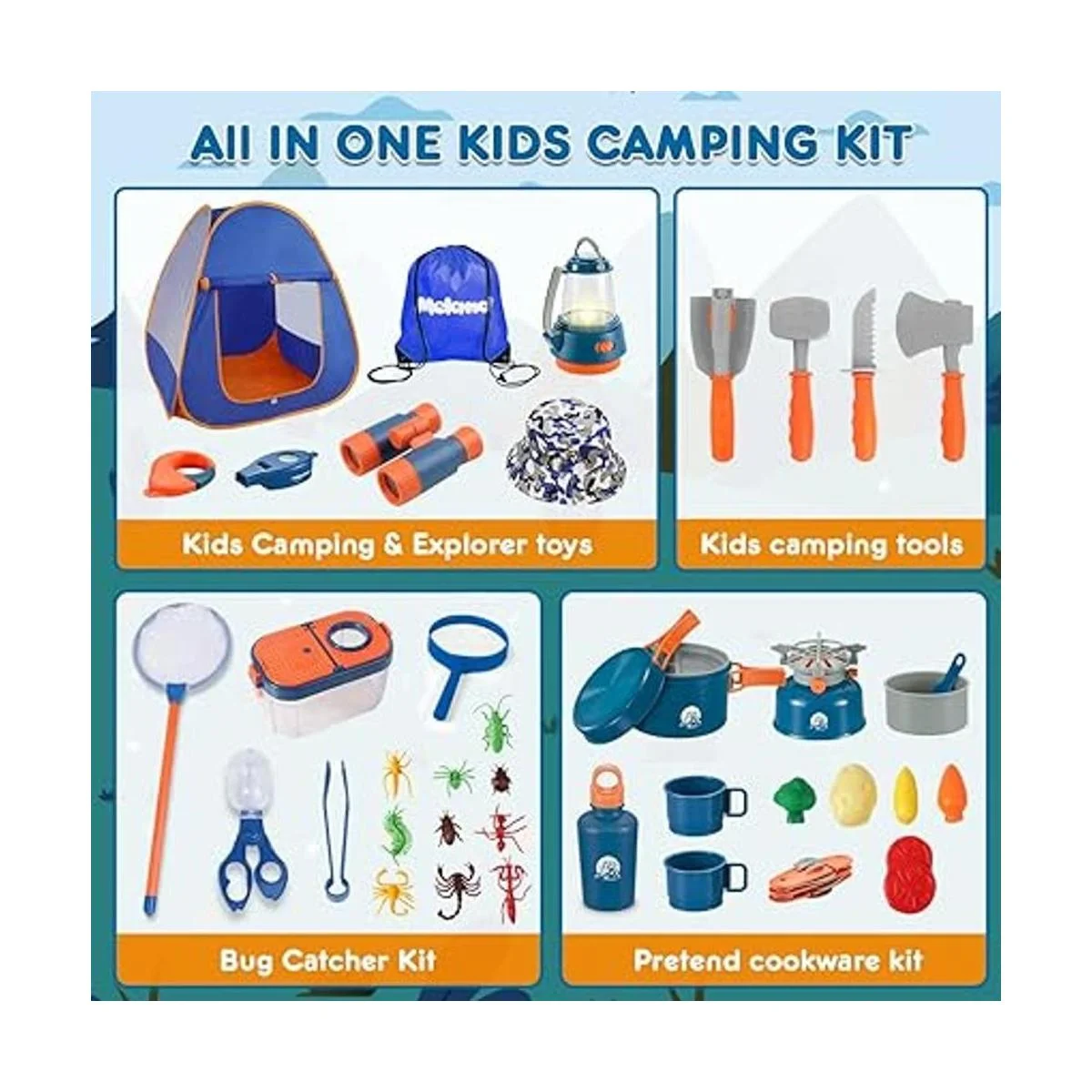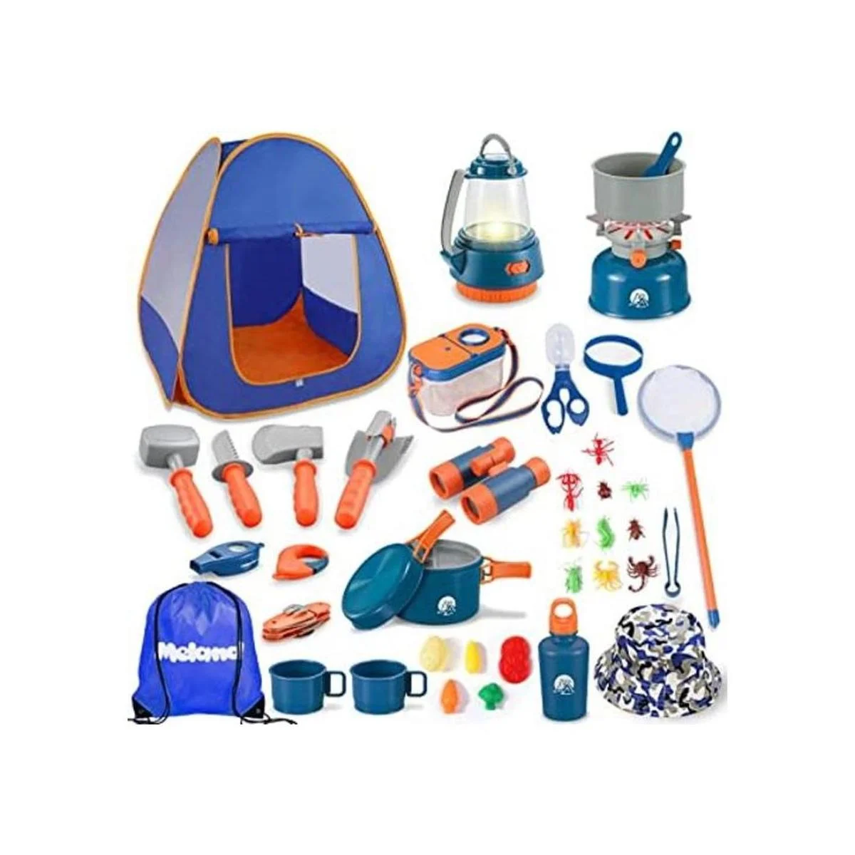 Meland Juego de campamento para niños con tienda de campaña de 42 piezas, juguete de equipo de campamento con tienda de campaña de simulación, juguete al aire libre para niños pequeños, regalo de cumpleaños
