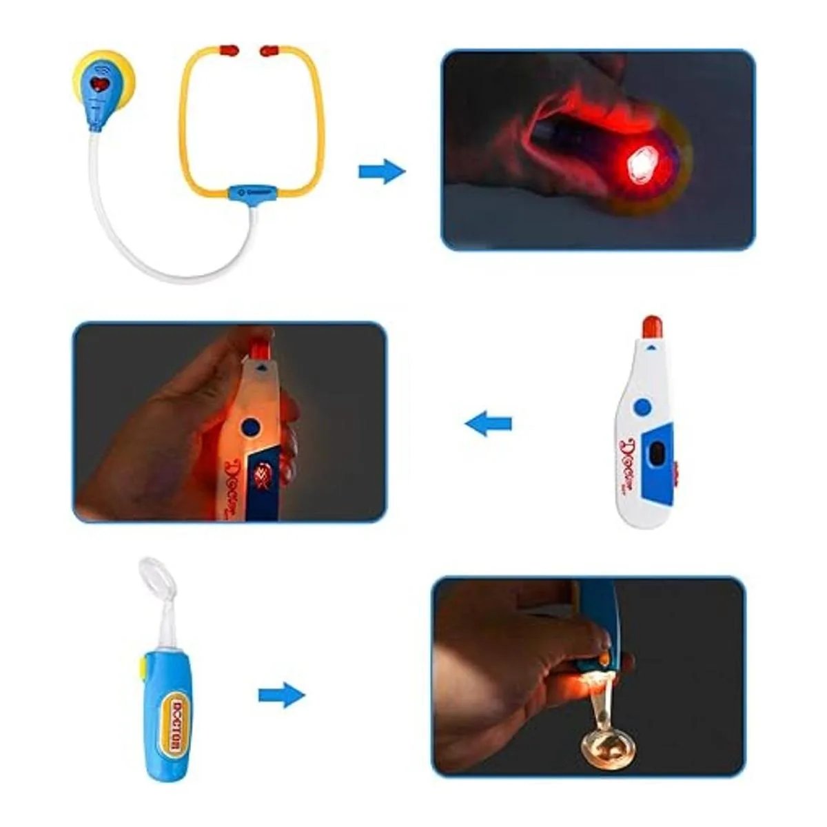 Juego de juguetes médicos educativos para construir confianza de los niños y desarrollar habilidades de condolencias y comunicación. Participar en el juego de rol médico y paciente en actividades de padres e hijos o juegos de niños ejercitará la conversación de los niños, enriquecerá la creatividad y desarrollará la empatía. Su pequeño médico estará obsesionado con curar a cualquier paciente y construir confianza durante estas actividades.