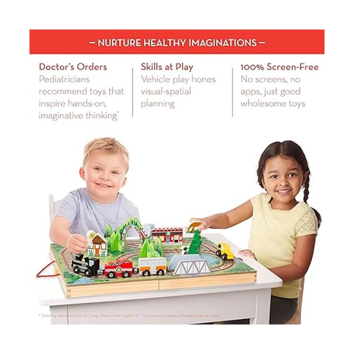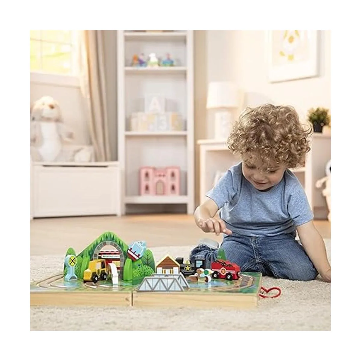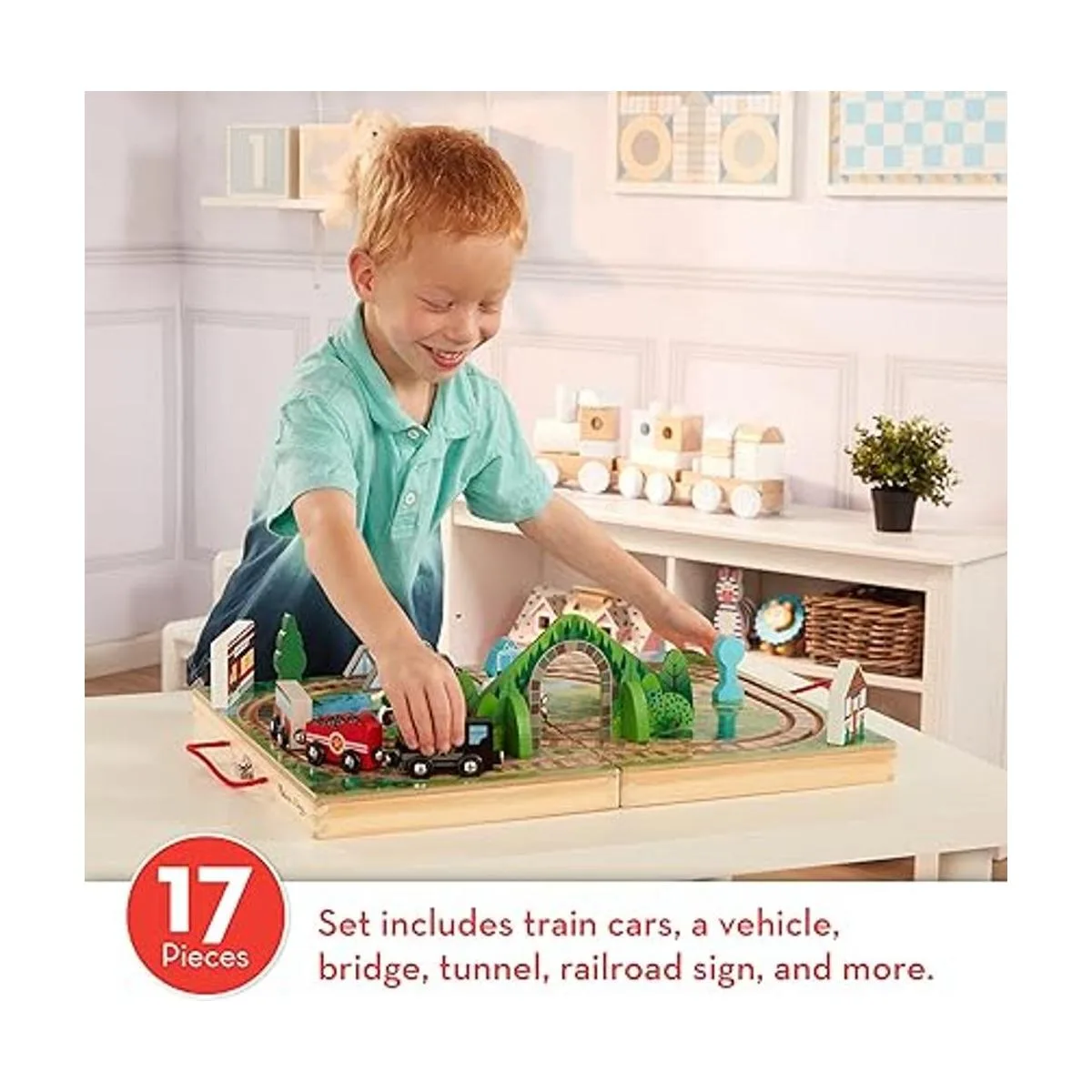 En movimiento: el Melissa Doug lleva el ferrocarril cuenta con pistas integradas, paisajes coloridos y piezas de juego divertidas que permiten a los niños tomar su imaginación para un giro y llevar el tiempo de juego a cualquier lugar que quieran ir
