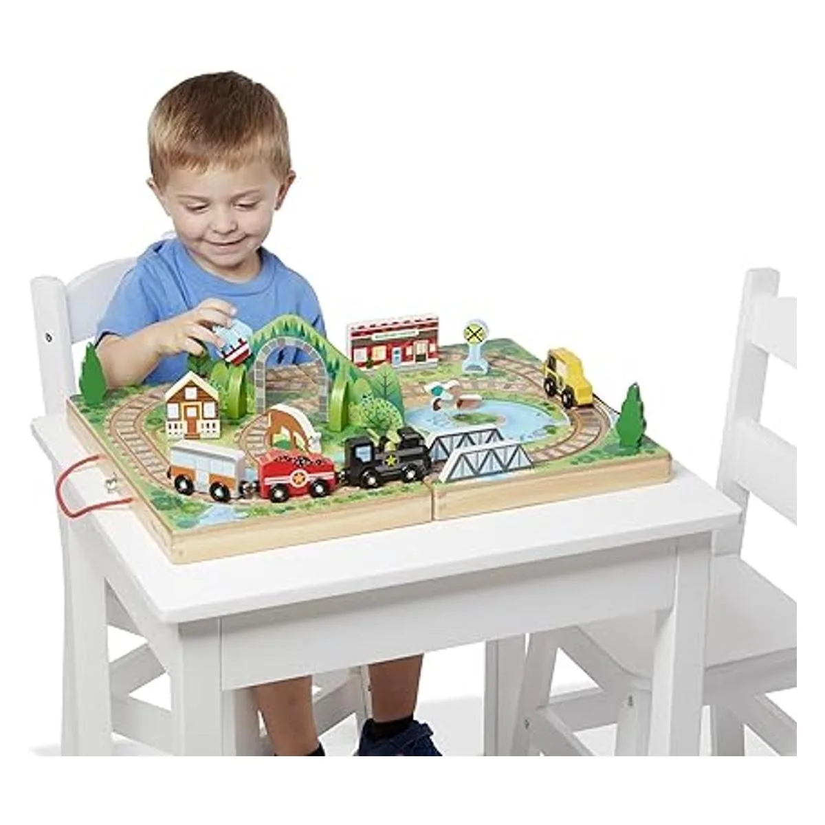 Melissa Doug 17 piezas de ferrocarril de mesa de madera, 3 trenes, camión, piezas de juego, puente, juegos de tren de madera para niños a partir de 3 años