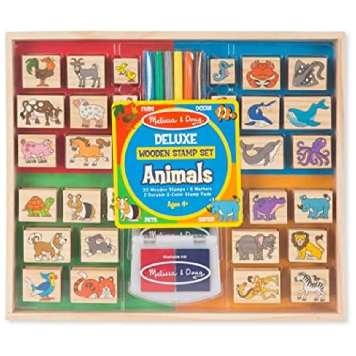 Melissa Doug 2394 Deluxe Juego de sellos de madera para animales Multi color44; 38 pieza