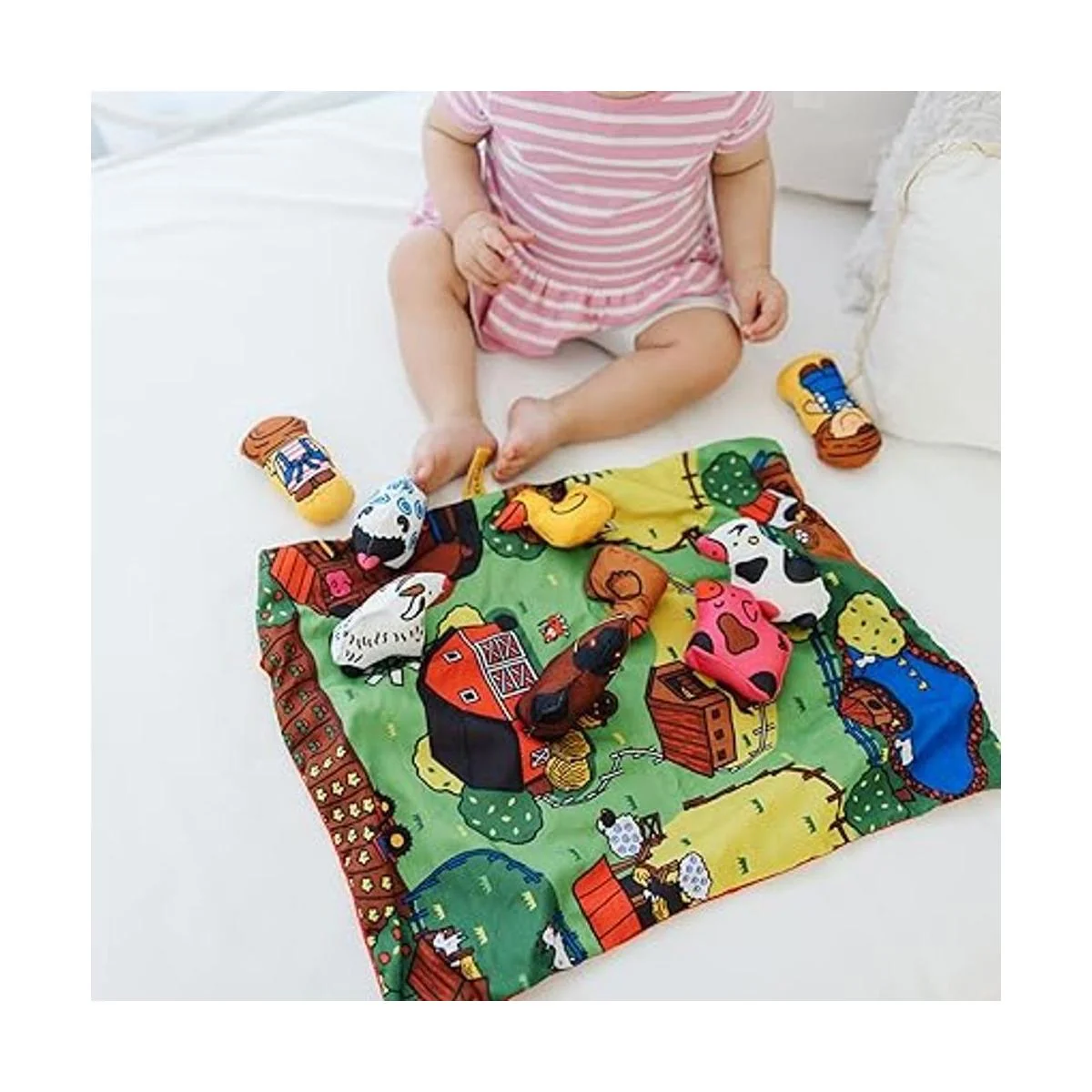 Alfombra de juego de actividades/bolsa de almacenamiento con escena de granja y 9 amigos de granja suaves