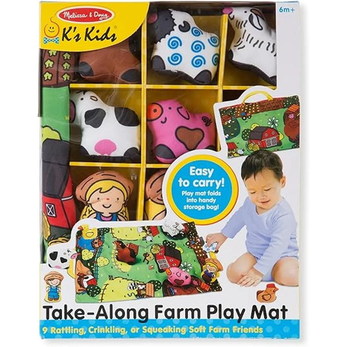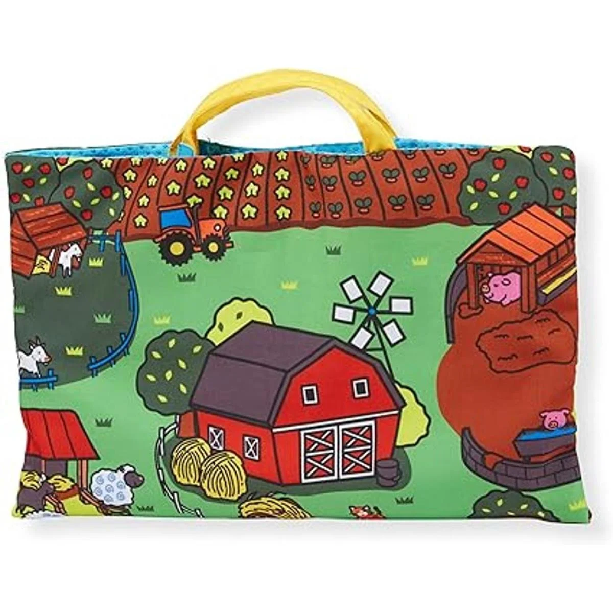 Melissa Doug Alfombra de juego para bebés y niños pequeños de granja 19.25 x 14.5 pulgadas con 9 animales, se pliega para ser práctica bolsa de almacenamiento para viajes