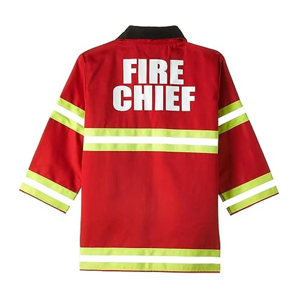 Melissa Doug Conjunto de disfraz de jefe de bomberos para disfrazarse, disfraz de bombero de simulación con accesorios realistas, disfraz de bombero para niños y niños pequeños a partir de 3 años