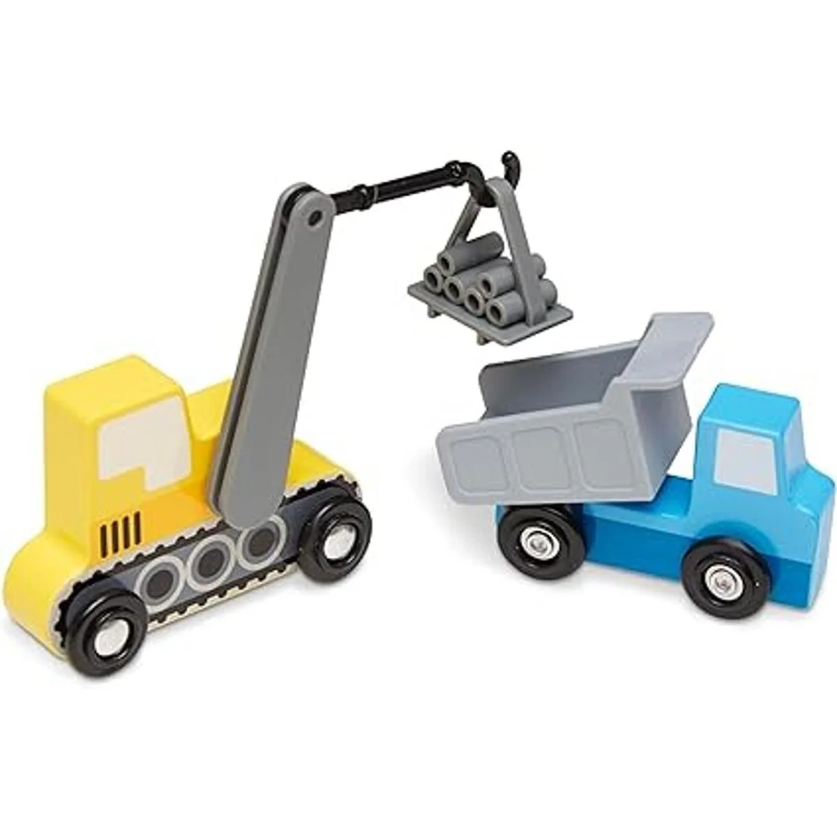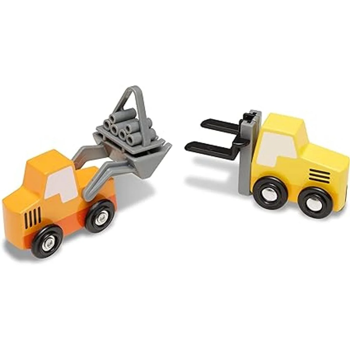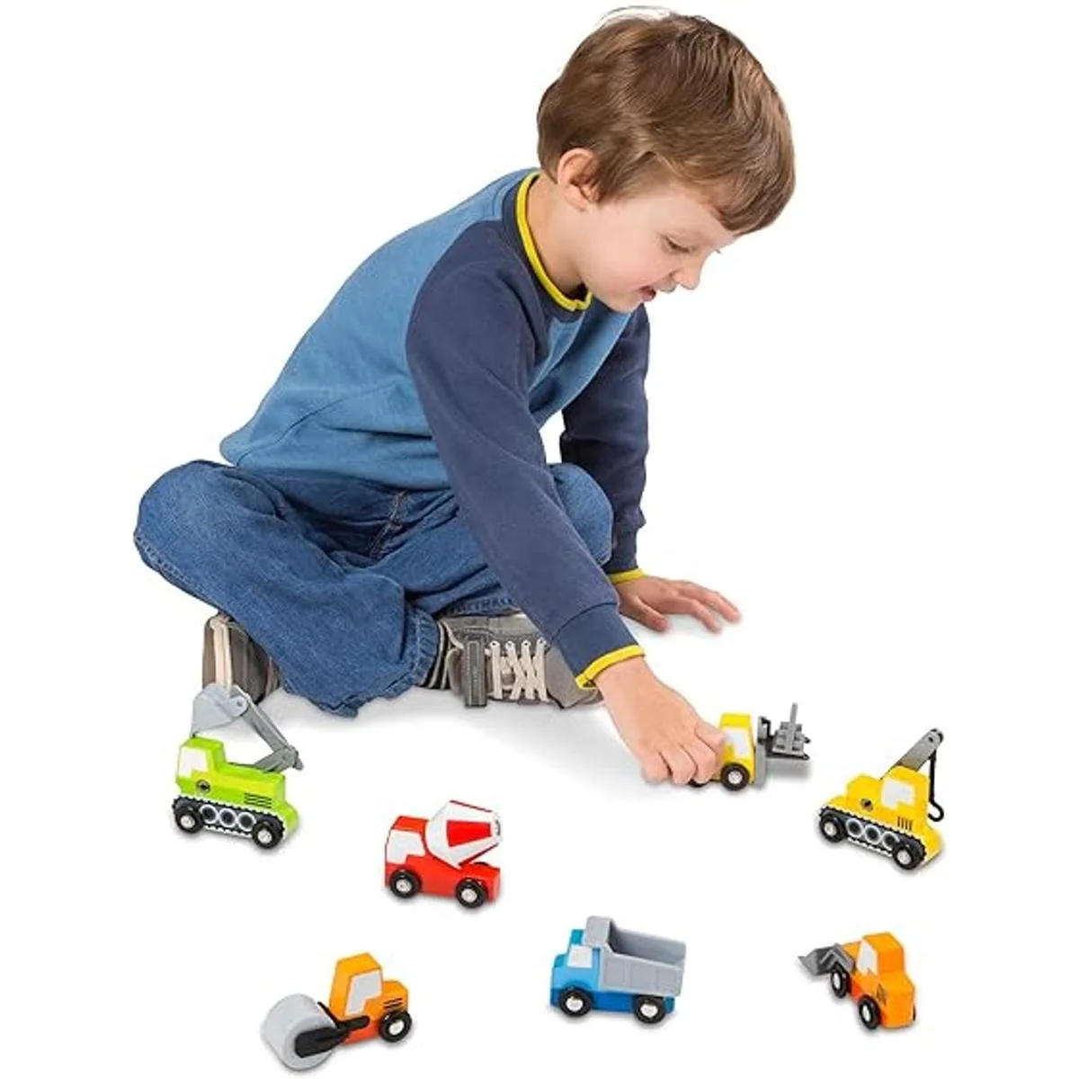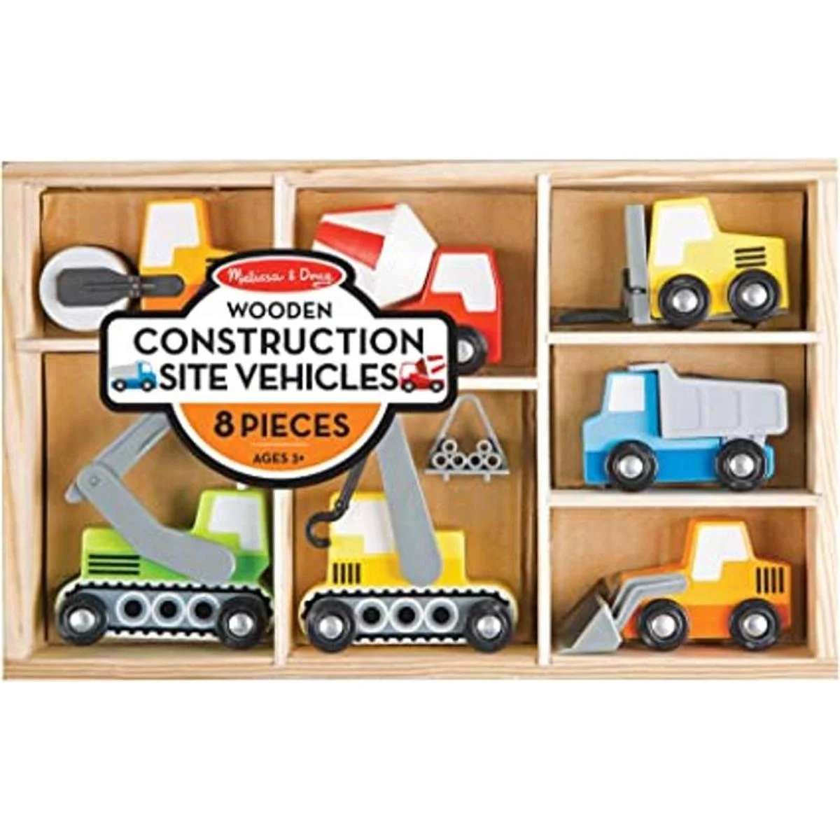 Melissa Doug de madera de construcción sitio Vehículos con bandeja de almacenamiento de madera 8 Pcs