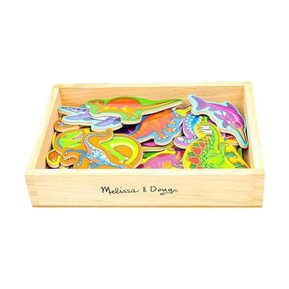 Melissa Doug Dinosaurios magnéticos de madera en una caja de almacenamiento de madera 20 piezas