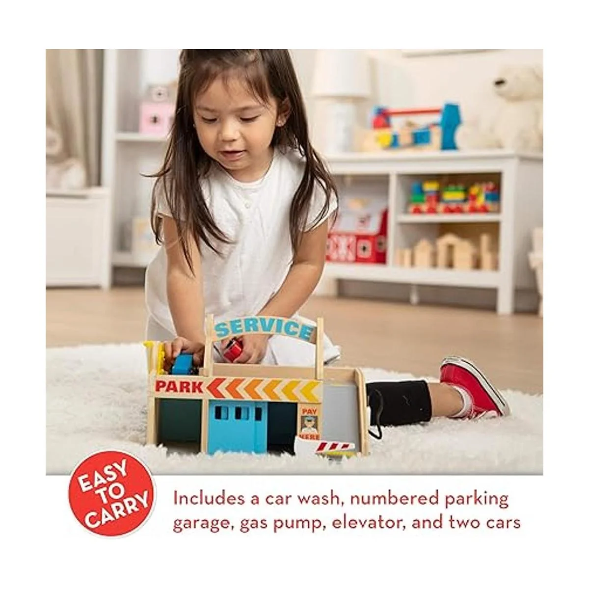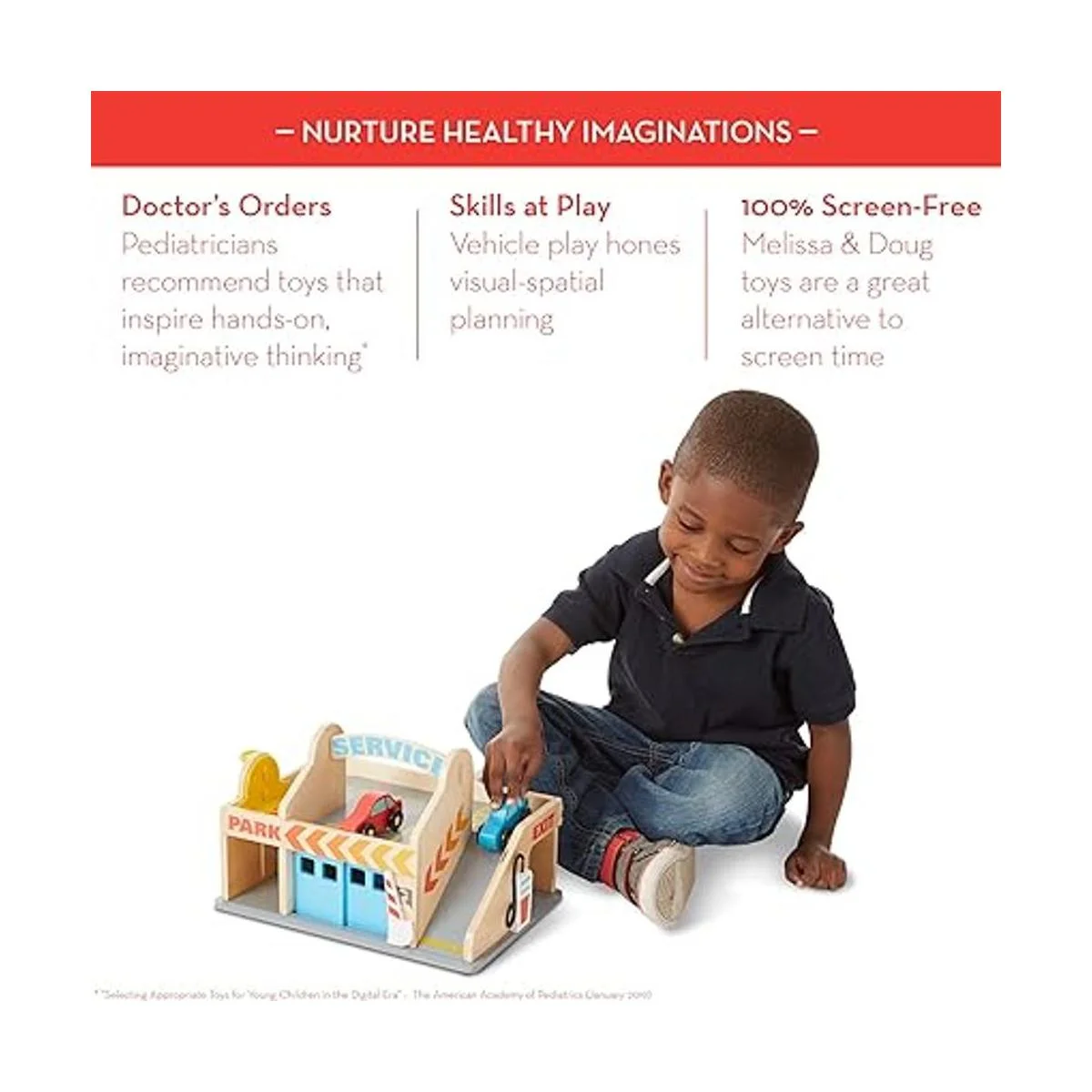 Melissa Doug Estación de servicio con 2 autos de madera y lavado de autos SIOC