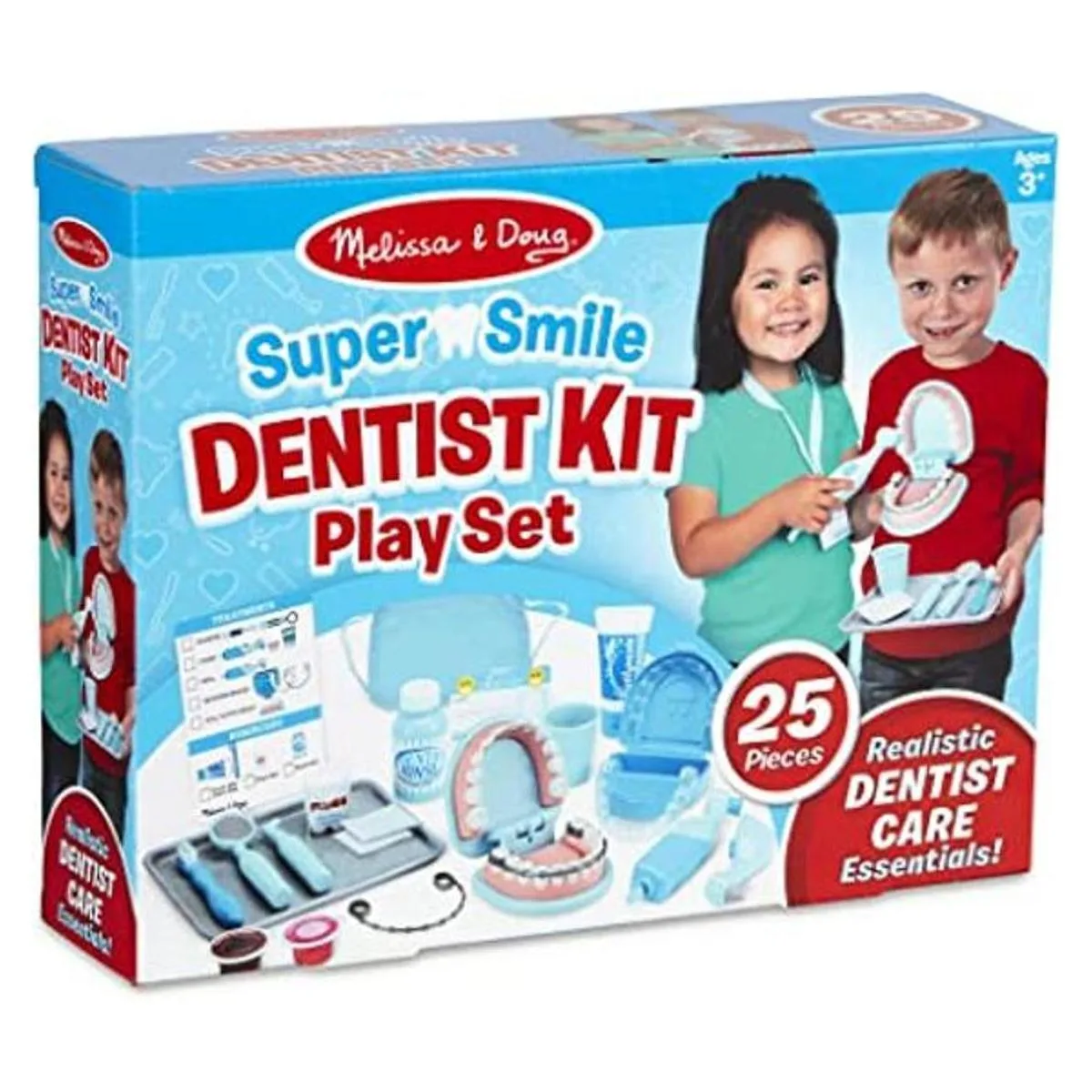 Melissa Doug Juego de dentista Super Smile con conjunto de dientes y accesorios dentales para juego simulado 26 piezas de juguete